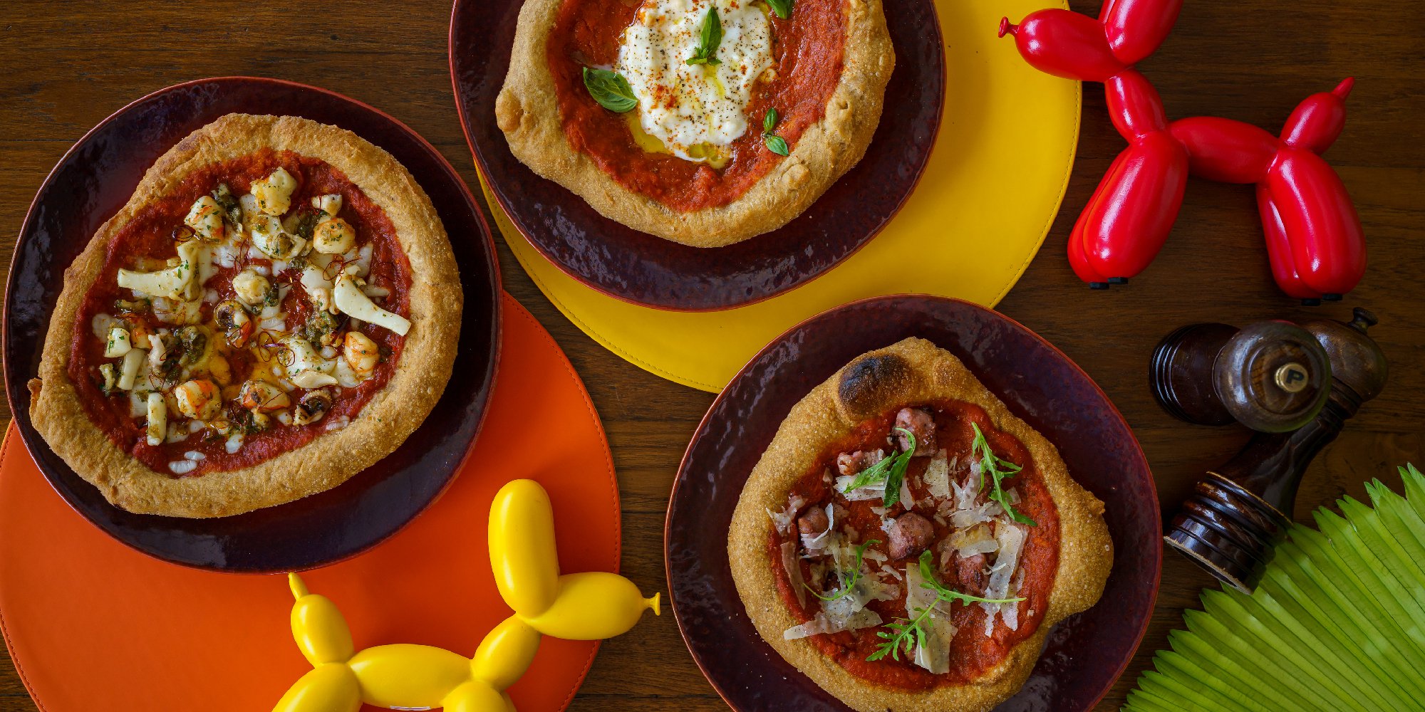 ถาดแรกเป็นรสชาติออริจินัล ถาดต่อมา ขออินต่อกับความเป็นอิตาเลียนด้วย พิซซ่าทอดหน้าไส้กรอกอิตาเลียนและผักร็อกเก็ต (390 บาท) ซึ่งเราชอบเป็นพิเศษ ด้วยรสชาติไส้กรอกอิตาเลียนกับพาร์เมซานชีสที่เข้ากันได้ดีเยี่ยม ส่วนถาดสุดท้ายเรารีเควส พิซซ่าทอดหน้าซีฟู้ด (420 บาท) ซึ่งเชฟจัดเต็มมาทั้งกุ้งลายเสือ ปลาหมึก และปลากะพง ซอสมะเขือเทศที่ทาจะออกรสเผ็ดนิดๆ ให้เข้ากับอาหารทะเล