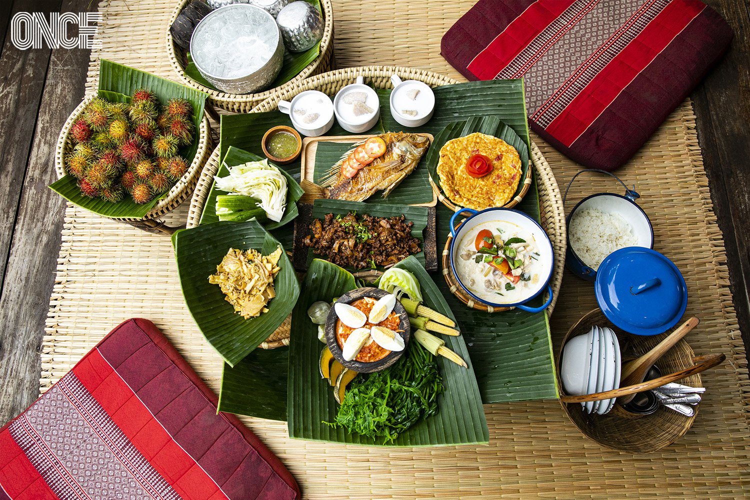 ตรงมื้อเย็นนี้ต้องเน้นไฮไลต์ เพราะอาหารเป็นหนึ่งอย่างที่ทุกคนต่างพูดถึง เพราะนอกจากหน้าตาที่ดูน่ากิน หรือการนำเสนออาหารที่ใช้กระบอกไม้ไผ่เป็นภาชนะ เรื่องรสชาตินั้นต้องยกให้ที่หนึ่งตราตรึงในความทรงจำ ซึ่งเมนูจะแตกต่างไปตามวัตถุดิบในแต่ละฤดูกาล เช่น แกงเห็ดเผาะที่จะได้ชิมในหน้าฝน ทุเรียนรสนวลๆ ที่จะได้ชิมในหน้าร้อน หรือเมนูท้องถิ่นอย่าง น้ำพริกซอกไข่ ที่เป็นเมนูประจำขันโตกจะได้ชิมทุกฤดู