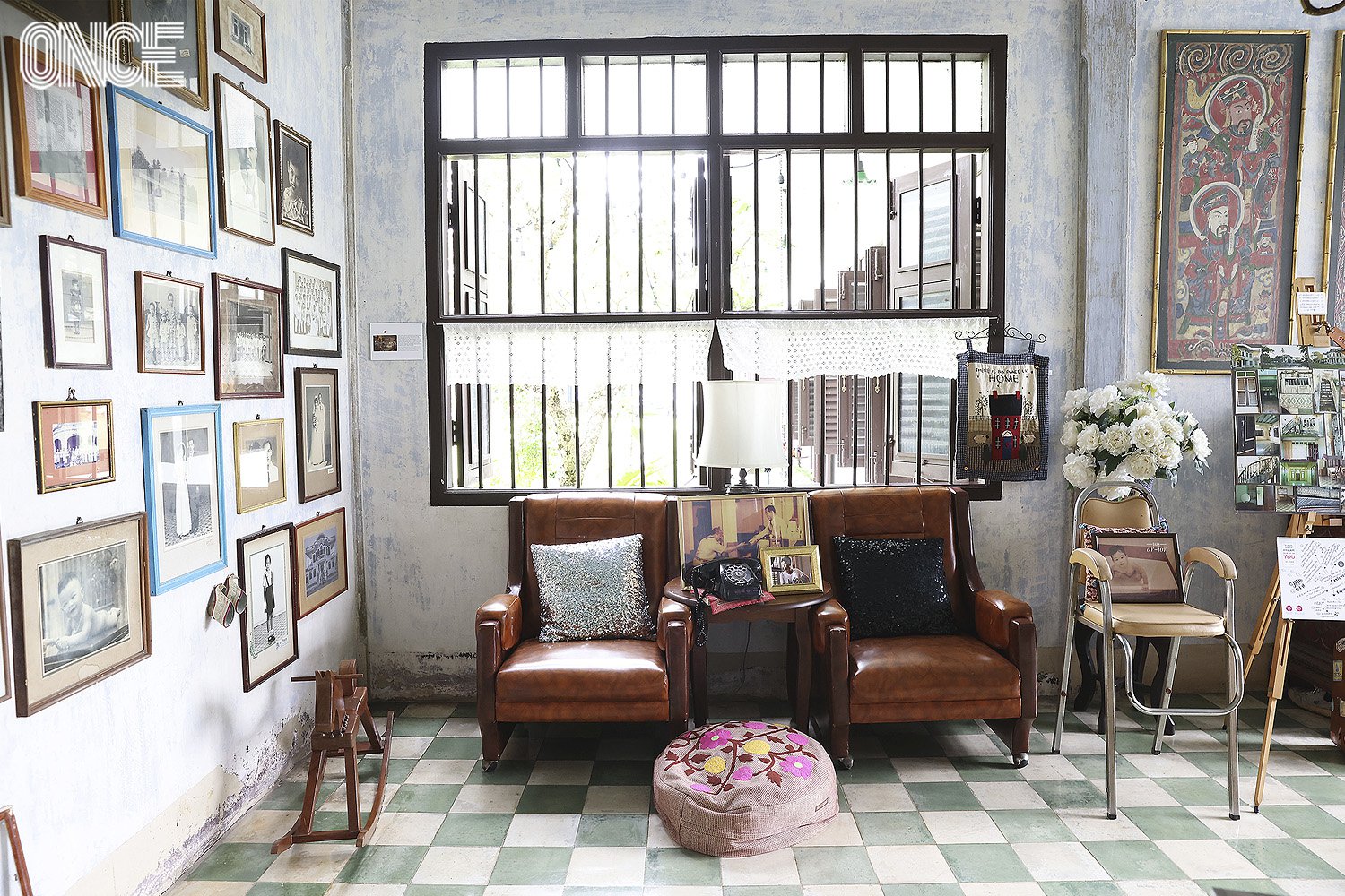 ส่วนอักษรจีน 2 ตัวบนป้ายหน้าประตูบ้านและบนเสื้อที่เจ้าตัวใส่นั้นเป็นคำที่ได้มาจากสุสานอาจ้อ ซึ่งหลายคนอาจจะเคยเห็นมาบ้างแล้วในย่านเมืองเก่า อ่านว่า ‘กวนซาน’ เป็นชื่อหมู่บ้านแห่งหนึ่งในประเทศจีนที่เป็นบ้านเกิดของบรรพบุรุษ ขณะที่ห้องโถงใกล้ดอกโบตั๋นเดิมเป็นห้องนั่งเล่น แปลงเป็นห้องเล่าเรื่องครอบครัว มีภาพสมาชิกทั้ง 4 รุ่น