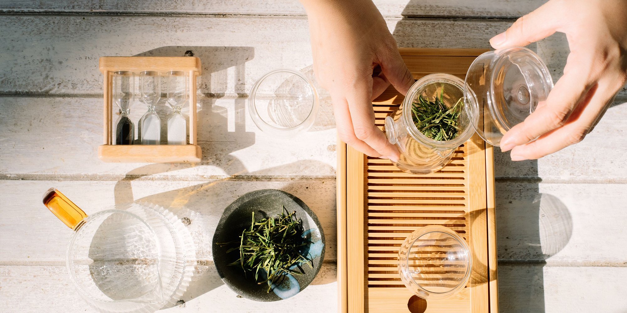ระหว่างคุยไปจิบชาสูตรเฉพาะตัวที่เกริ่นไว้ตอนต้นไปด้วย รู้ตัวอีกทีก็ไม่เหลือน้ำกาแรกแล้ว ก่อนที่เฟรมจะลงมือชงน้ำสองต่อ พร้อมอธิบายส่วนผสมประกอบด้วย ชาอู่หลงผสมโกโก้ คาโมมายด์ ลาเวนเดอร์ เพื่อให้กลิ่นของอโรมาช่วยเรื่องการผ่อนคลาย มีเก๊กฮวยช่วยแก้ปัญหาร้อนในง่าย และเป็นคนไม่ชอบหวาน เลยไม่ใส่หญ้าหวานเยอะมาก แต่ใช้ความหวานจากมะตูมเข้าไปแทน