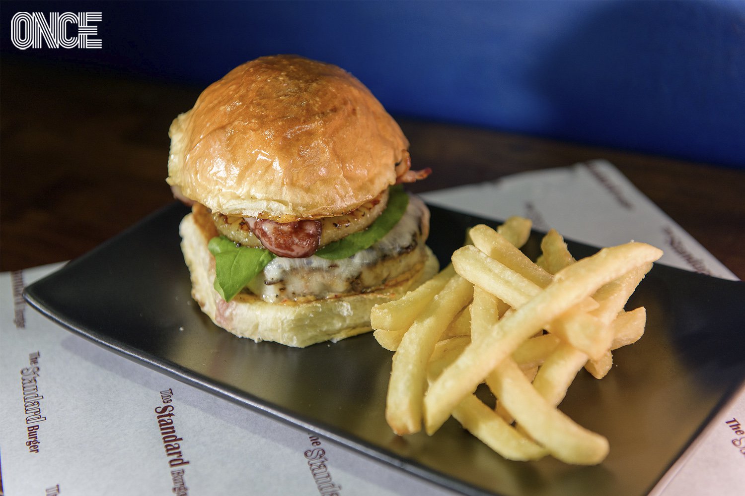 พ่อค้าแนะนำว่า ใครยังไม่เคยมา ให้ลองเมนู The Standard เป็นเบอร์เกอร์เรียบง่าย อารมณ์กินแบบเชิงลองให้รู้จักรสชาติของร้านก่อน แต่เรามาทั้งทีขอสั่งเมนูยอดฮิตอย่าง Summer Lovin เนื้อ (275 บาท) เป็นเนื้อออสเตรเลียที่คนไม่ค่อยกินเนื้อก็กินได้ง่ายๆ เลย ราดด้วยมอซซาเรลลาที่มีกลิ่นหอมของกระเทียมนิดๆ สับปะรดย่าง เบคอนรมควันทอดกรอบ กับซอส oioli กระเทียมโฮมเมด และผักเบบี้ร็อกเก็ต ปิดด้วยขนมปังโฮมเมดสูตรต้นตำรับที่เนื้อเหนียวนุ่มและชิ้นใหญ่มาก เราชอบเป็นพิเศษ เพราะติดใจกลิ่นหอมของเนย คนรักขนมปังจะเข้าใจ