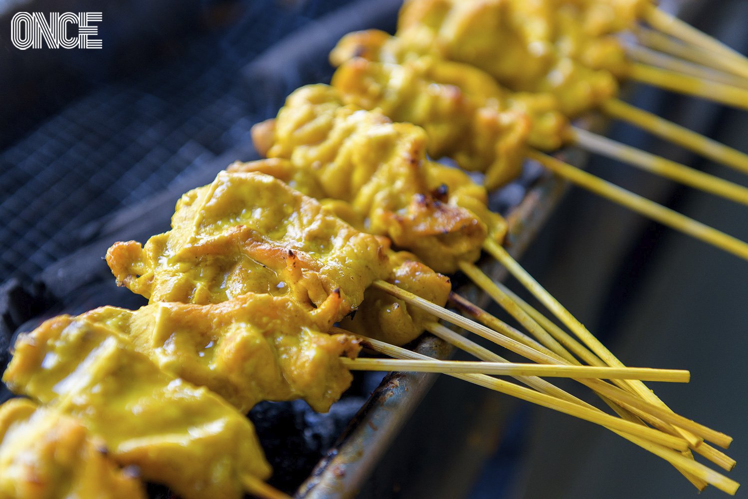 เดินต่อไม่กี่นาทีจะเจอร้านหมูสะเต๊ะ เราตาลุกวาวเพราะเป็นของโปรด เลยสั่งมาเพิ่มขนาดน้องพุงที่นี่ด้วยละกัน ร้านนี้เปิดมามากกว่า 60 ปีแล้ว ความโดดเด่นของที่นี่ เขายังคงอนุรักษ์การย่างหมูบนเตาถ่าน เพื่อให้ได้หมูสะเต๊ะที่มีกลิ่นหอมแบบเฉพาะ ส่วนน้ำจิ้มเคี่ยวเองโดยใส่เครื่องเทศให้มีรสชาติเข้มข้น ได้กลิ่นหอมเป็นเอกลักษณ์ของร้านเลย มีขนมปังปิ้งเตาถ่านหอมๆ เสิร์ฟมาด้วยนะ กินเพลินจนต้องขอยกนิ้วว่าอร่อยสมคำร่ำลือ