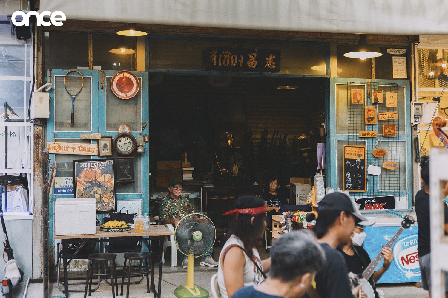 ทุกครั้งที่พวกเขามารวมตัวกันจะปักหมุดที่หน้าร้านขายของเก่าชื่อว่าจี่เชียง ไม่เคยเปลี่ยนที่ไปยังจุดอื่นในตลาดรถไฟศรีนครินทร์ “ผมเป็นเจ้าของร้านแห่งนี้แหละ” ประวิทย์เล่า “ผมเริ่มเล่นดนตรีก็เพราะว่าเป็นเจ้าของร้านขายของเก่านี่แหละ”