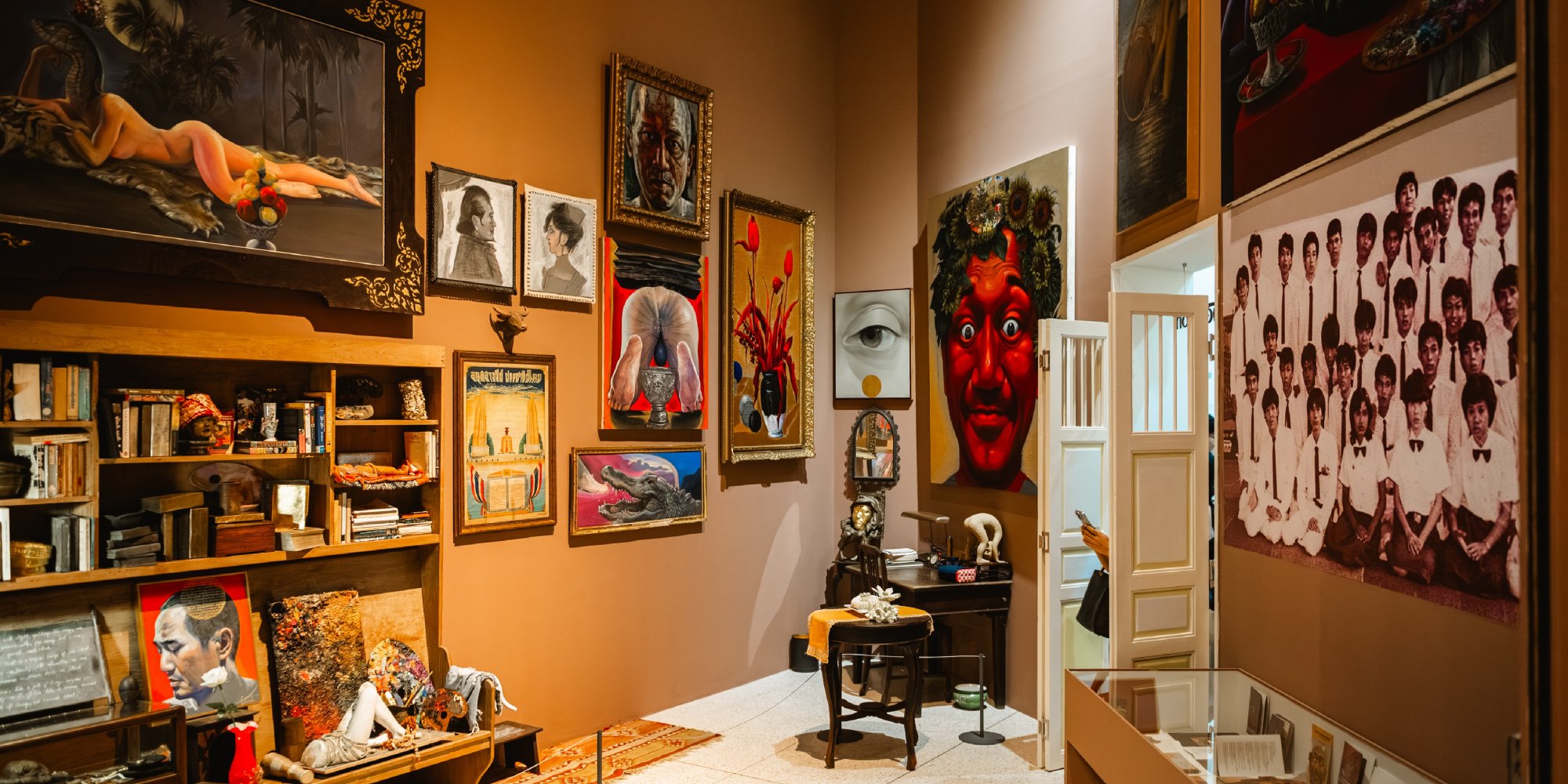 มีผลงานตลอดหลายสิบปีของศิลปินในแต่ละห้องของบ้านจำลอง ทุกคนจะได้เห็นภาพจำอันคุ้นเคยกับงานศิลปะสีสันฉูดฉาด เนื้อหารุนแรง เสียดสีสังคม และหน้าของเขากับดวงตาเบิกโพลง ซึ่งแสดงตัวตนและเอกลักษณ์ในฐานะศิลปินของ ชาติชาย ปุยเปีย