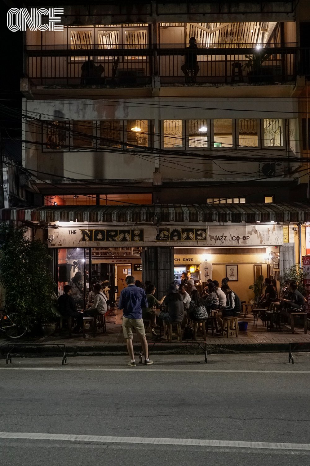เรามีโอกาสพูดคุยกับทีมผู้จัดงาน ประกอบด้วย ปอ-ภราดล พรอำนวย ชายหนุ่มที่เป่าแซกโซโฟนแล้วเท่มาก เขาคือผู้ก่อตั้งร้าน Northgate Jazz Co-op, เต่า-วารินทร์ ถาธัญ มือเบส เจ้าของร้าน Moment’s Notice แจ๊สบาร์น้องใหม่ ผู้ซึ่งย้ายกลับมาอยู่บ้านเกิดหลังไปใช้ชีวิตอยู่กรุงเทพ 10 กว่าปี และโอชิน-สาริสา ธรรมลังกา Marketing Director จากโอลด์เชียงใหม่ ผู้หลงใหลในมนต์เสน่ห์ของการร้องเพลงสไตล์แจ๊ส ซึ่งเธอออกตัวว่าไม่ใช่นักร้องประจำ แต่มาร้องแจมที่ Northgate Jazz Co-op เป็นบางวันเท่านั้น