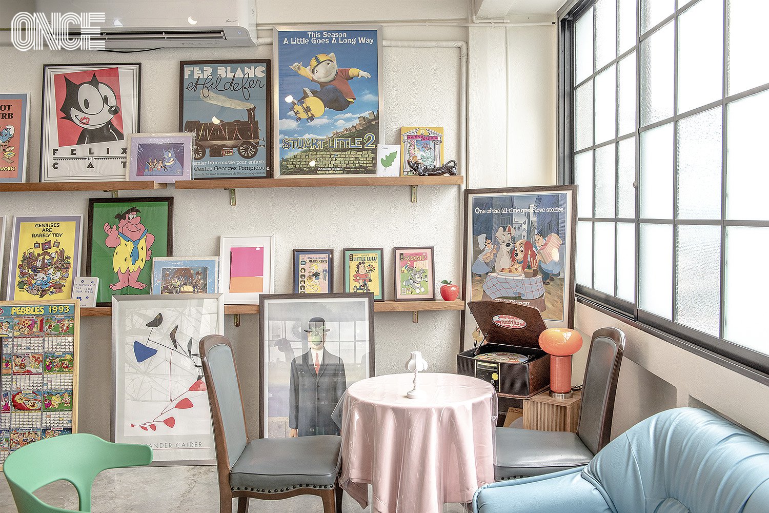 ที่นี่ตกแต่งด้วยเฟอร์นิเจอร์หลากสีเพื่อให้เข้ากับทุก Character ของกองทัพตัวการ์ตูนแสนน่ารักที่ตกแต่งอยู่ทั่วทุกมุมร้าน อย่างเช่น Mickey Mouse, Felix, Simpson, Dumbo, Pop Eye, และอื่นๆ มีมุมโซฟาให้เรานั่งหย่อนตัว มีมุมแกลลอรี่ขนาดย่อมให้ได้นั่งเปลี่ยนบรรยากาศ ทั้งยังมีเสียงเพลงจากเครื่องเล่นแผ่นเสียงสุดคลาสสิกตรงโซน Lady and the Tramp เสริมให้เข้ากับบรรยากาศของร้านอีกด้วย