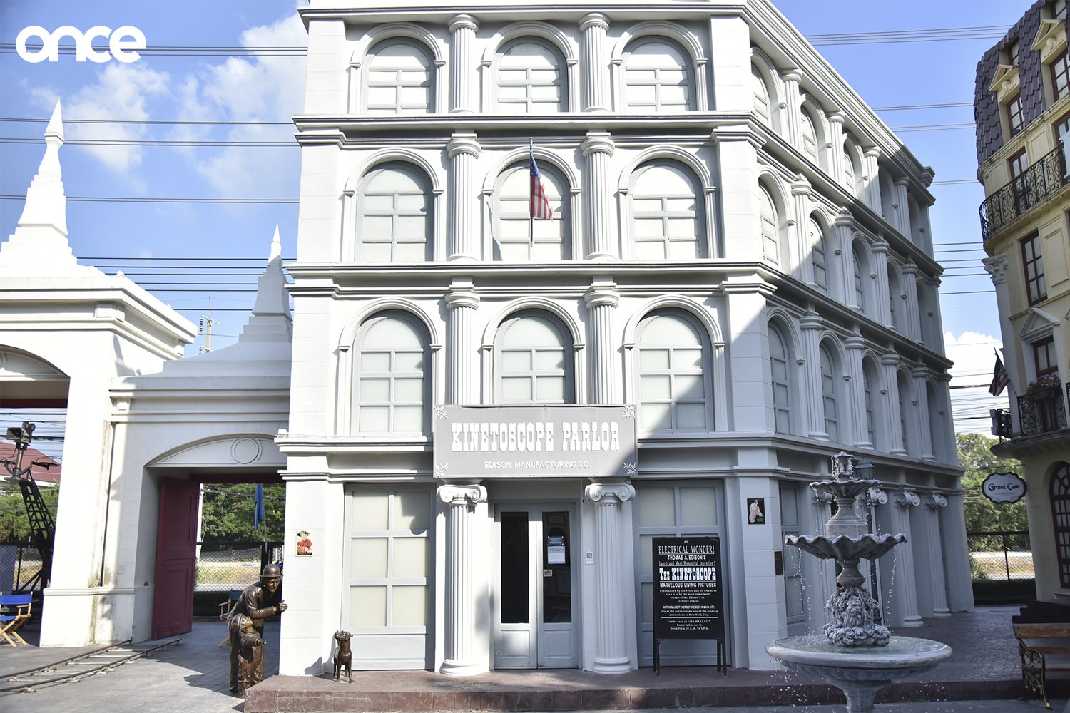 ถึงเราจะลอดผ่านประตูสามยอดไม่ได้ แต่ด้านข้างของประตูคือ ‘มงคลบริษัท’ หรือที่ชาวบางกอกเรียกกันว่า ‘โรงละครหม่อมเจ้าอลังการ’ ที่มีการค้นพบหลักฐานทางประวัติศาสตร์ว่า เมื่อวันที่ 10 มิถุยายน ปี พ.ศ.2440 ได้มีชาวต่างชาติมาจัดฉายหนังที่นี่ครั้งแรก ไม่เกี่ยงเพศ ไม่จำกัดชนชั้น ใครๆ ก็สามารถซื้อตั๋วเข้ารับชมได้ วันที่ข้างต้นจึงถูกยกเป็นวันกำเนิดภาพยนตร์ในสยามไปโดยปริยาย