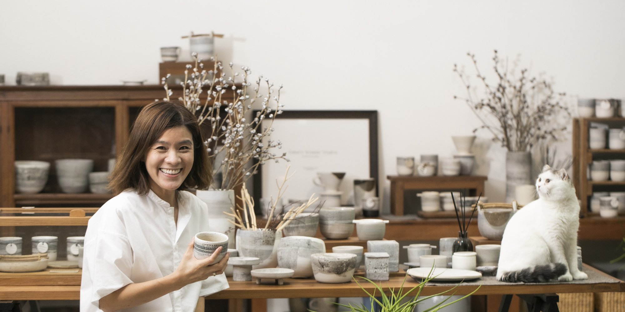“พี่ว่างานคราฟท์เติบโต คนเข้าใจมากขึ้น เซรามิกก็สามารถเสริมกันกับต้นไม้ได้ แมตซ์กันได้ เอาจริงๆ ในช่วงโควิด-19 แบบนี้ มันเยียวยาได้ดีจริงๆ ส่วนตัวพี่ชอบต้นไม้อยู่แล้ว พอเห็นฟอร์มต้นไม้ก็คิดทำชิ้นงานออกมา ต้นไม้กับกระถางเซรามิก มันไปกันได้ดี เพราะฟอร์มของต้นไม้ก็เหมือนเป็นงาน Sculpture ทั้งกิ่ง ก้าน ต้น ใบ บางทีกระถางที่มีลวดลายหรือเท็กซ์เจอร์ก็ทำให้รูปลักษณ์ต้นไม้เปลี่ยนไปเหมือนกัน เหมือนเราจับต้นไม้มาใส่ชุด แล้วพี่เองติดนิสัย stylist หน่อยๆ ชอบจับนั่นนี่ เซ็ตอัพอันนั้นอันนี้มาวางด้วยกัน ทุกอย่างเลยเป็นอย่างที่เห็น (หัวเราะ)”