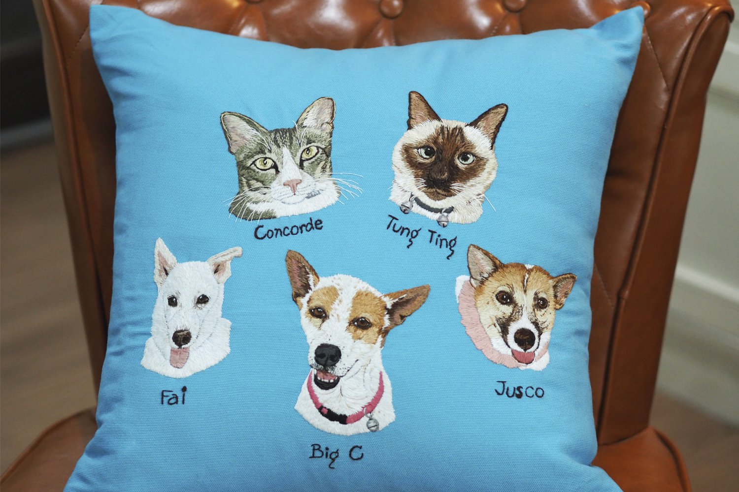 ปัจจุบัน ทางแบรนด์รับปักภาพลงบนเสื้อแจ๊กเก็ต ปลอกหมอน หมวก หรือปักบนกรอบสะดึงสำหรับแขวนโชว์ติดฝาผนังเก๋ๆ ในบ้าน ใครอยากมีภาพสัตว์เลี้ยงแสนรัก ลองติดต่อคุณแอ๊นได้เลย ปกติเธอใช้เวลาปักผ้าประมาณ 3-5 วัน ขึ้นอยู่กับขนาดของภาพด้วยนะ