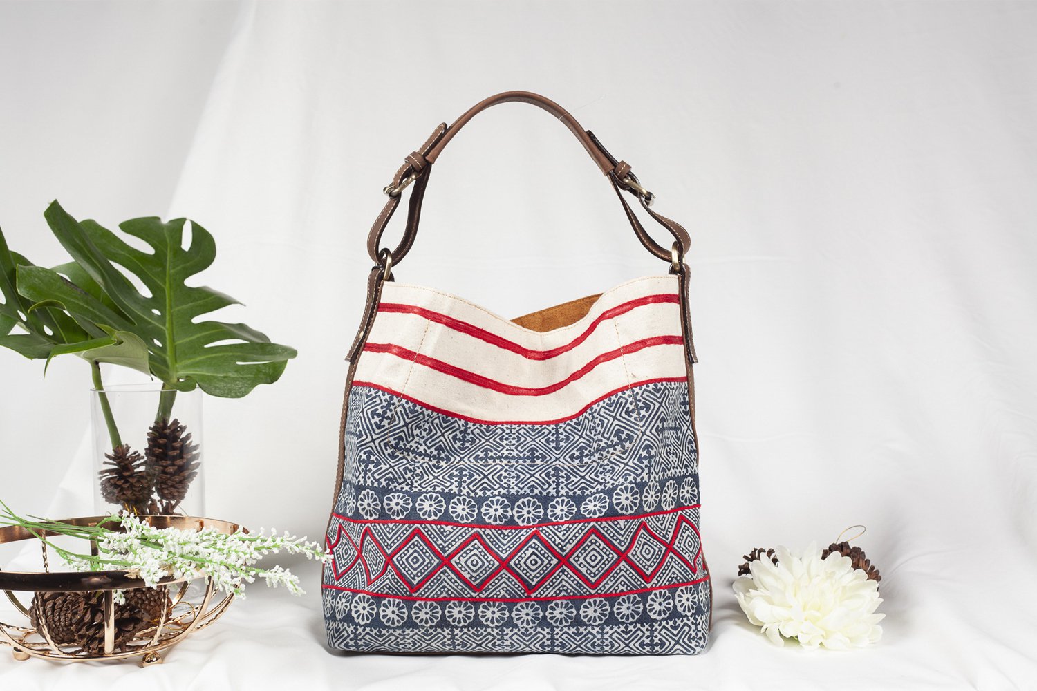 ผ้าเขียนเทียนที่วาดเสร็จ ดีไซเนอร์จะนำมาออกแบบผสมผสานเข้ากับหนังแท้และวัสดุอื่นๆ เพื่อให้เกิดสินค้าที่มีความแปลกใหม่ในรูปแบบต่างๆ สะท้อนถึงปณิธานของแบรนด์ ที่ต้องการสนับสนุน ช่วยเหลือ และสร้างงานให้แก่ชาวเขา รวมทั้งเป็นส่วนหนึ่งในการอนุรักษ์ภูมิปัญญาการเขียนเทียนแบบดั้งเดิมไม่ให้สูญหายตามกาลเวลา