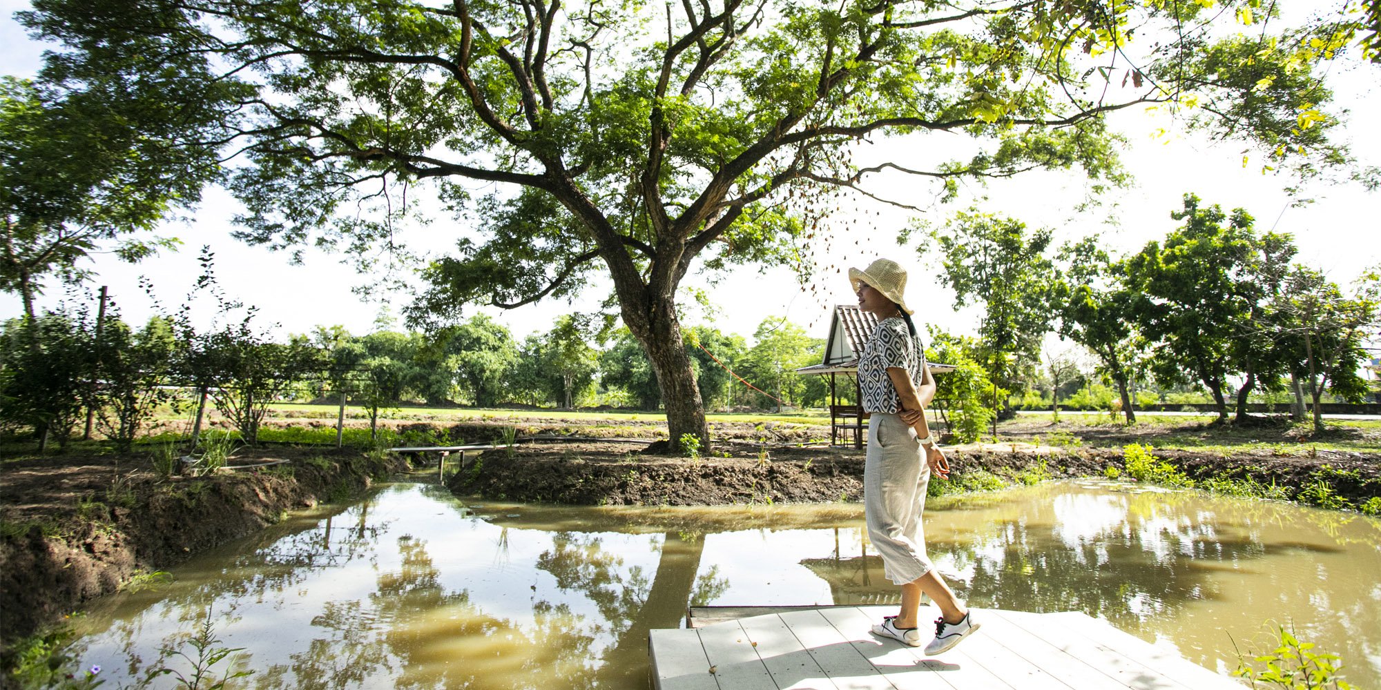 มนุษย์กรุงเทพฯ น่าจะเคยพูดแบบนี้กับตัวเอง แถมเคยอิจฉาเพื่อนที่มีบ้านนอกให้กลับ แต่รู้ไหมว่าเพียงขยับออกไปนอกเมืองเล็กน้อย คุณจะได้พบกับ ‘ดวงตวัน บ้านสวน’ มีทุ่งนา แปลงผัก ใต้ถุนบ้าน ช่วยเติมเต็มความรู้สึกเหมือนได้อยู่บ้านต่างจังหวัด แบบไม่ต้องไปไหนไกล