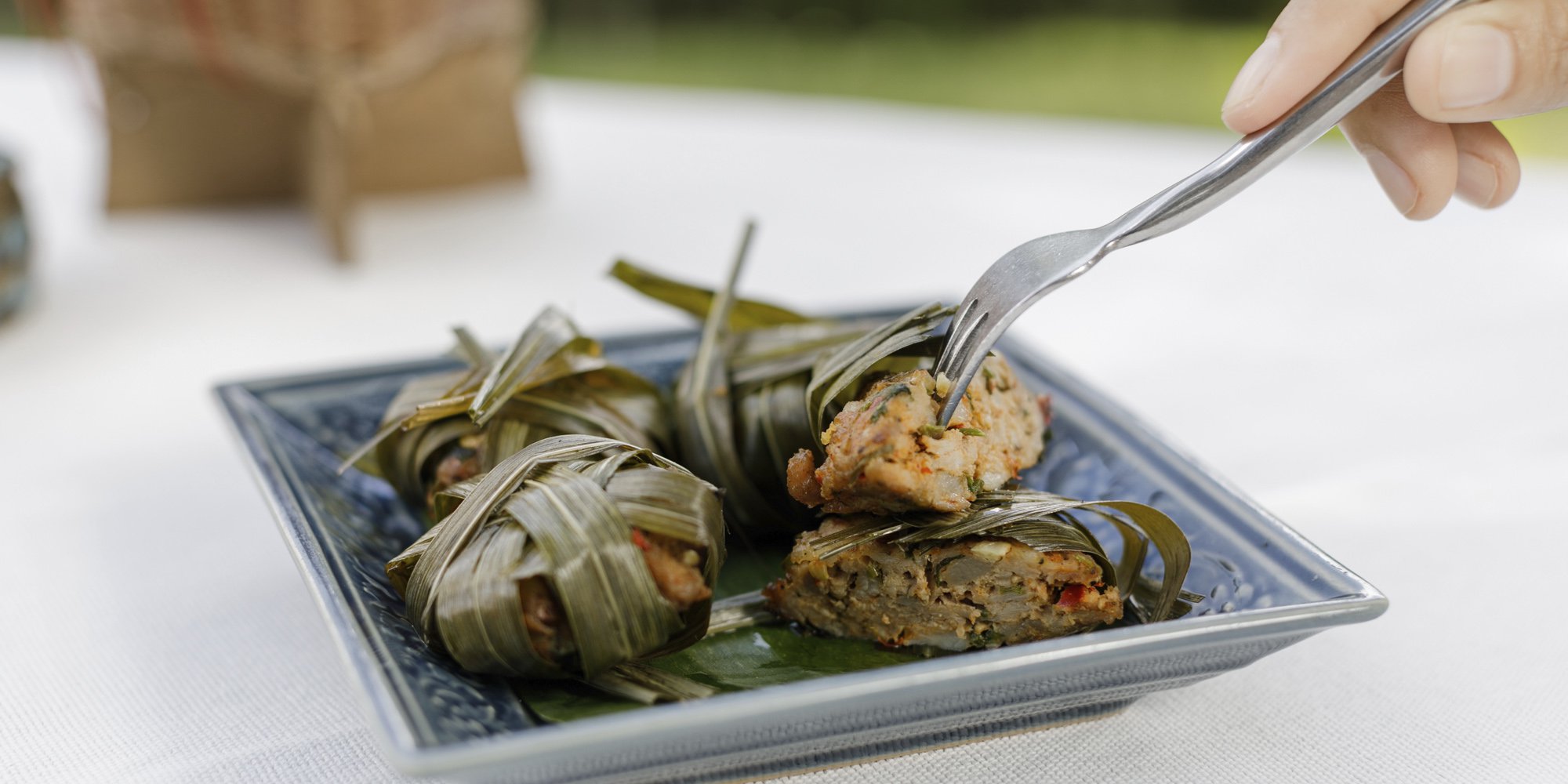เมนูข้าวบ่าย เป็นการนำข้าวเหนียวมาคลี่ออกเป็นแผ่น แล้วนำเอาวัตถุดิบป้ายลงไปด้านบน จากนั้นม้วนห่อด้วยใบตอง เป็นเมนูที่สามารถรับประทานได้ตลอดทั้งวัน