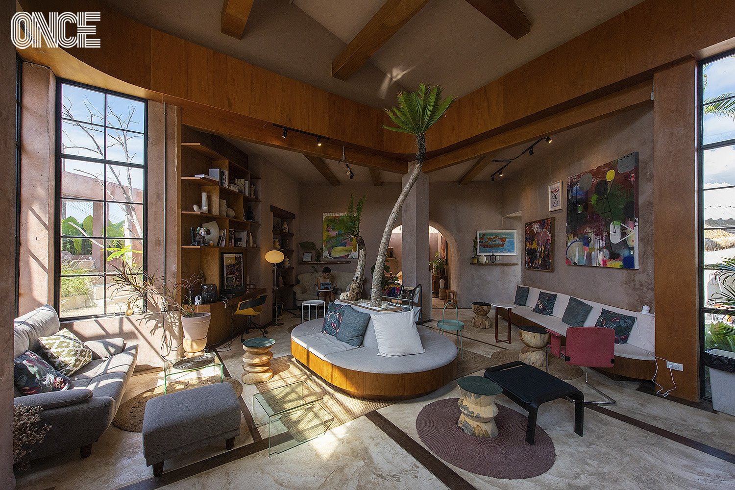 จากอาชีพสถาปนิกที่สร้างบ้านให้คนอื่นมาทั้งชีวิต ถึงเวลาต้องลุยร้านของตนเอง เปี๊ยกอธิบายถึงความตั้งใจแรกด้วยรอยยิ้มว่า “จริงๆ ไม่ได้เริ่มจากความคิดที่ว่าชอบสไตล์ไหนแล้วเอามาทำ แต่เราคิดจากฟังก์ชันก่อนว่าเราจะขายอะไร เมื่อตกลงว่าจะขายเครื่องดื่มก็อยากทำให้เป็นพื้นที่ที่ทุกคนเข้ามาปาร์ตี้สนุกสนาน แล้วเดินไปถ่ายรูปได้ทุกที่” ด้วยความตั้งใจนี้การสร้างร้านเป็นตึกแถวก็ถูกปัดตกไป พร้อมกับหาพื้นที่ว่างแล้วสร้างทุกอย่างใหม่ทั้งหมด