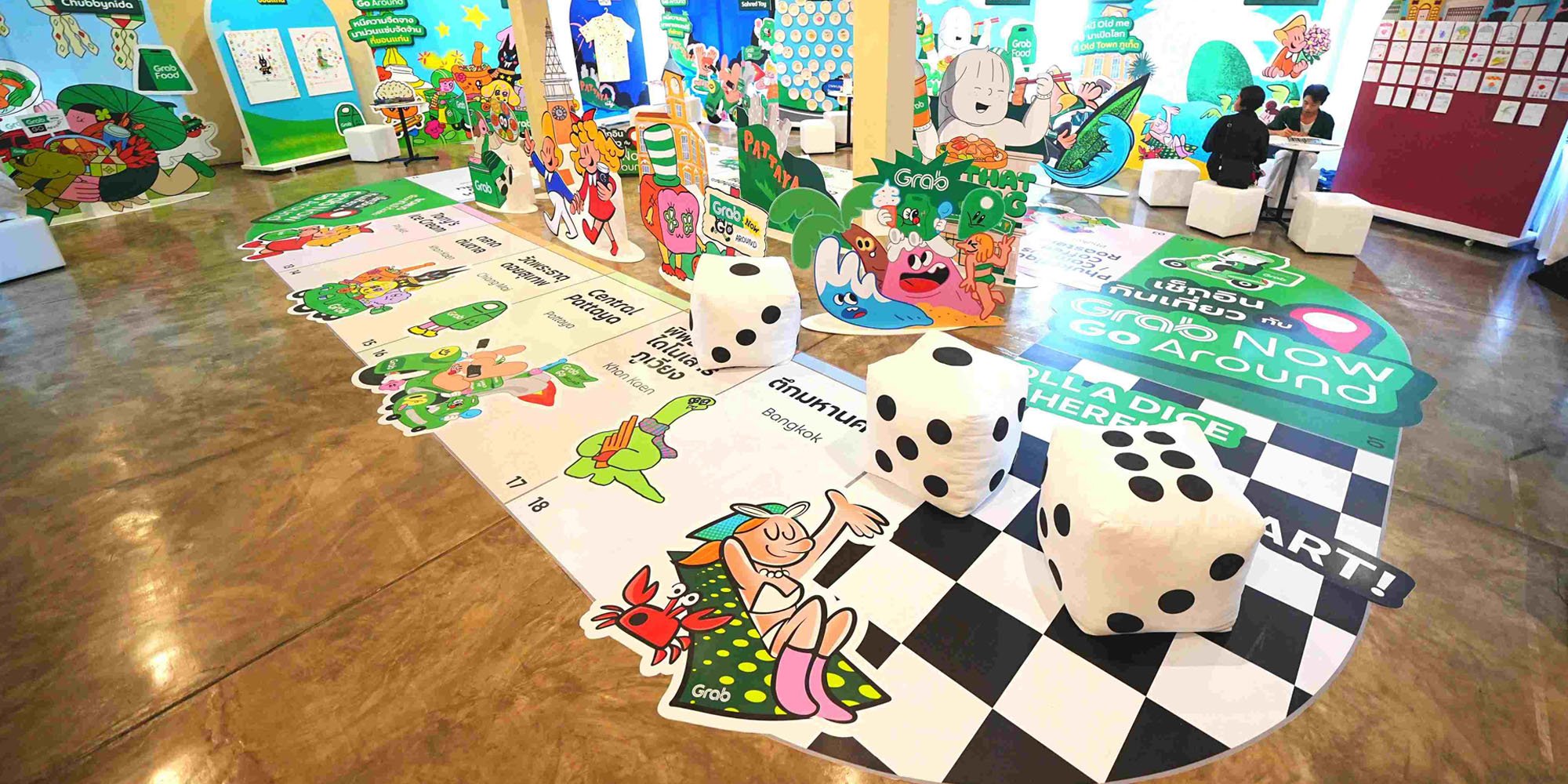 ภายในงานยังมีกิจกรรมสนุกๆ เช่น การเพ้นท์ลายเสื้อ ระบายสีเมืองเก่าภูเก็ต ปั๊มสแตมป์โลกไดโนเสาร์ที่ขอนแก่น และลุ้นรับ “แกร็บชาปอง” พวงกุญแจลายพิเศษจากศิลปินที่มีเฉพาะในงาน รวมถึง Interactive Wall ที่ให้ผู้ชมร่วมแชร์จุดเช็กอินในฝัน