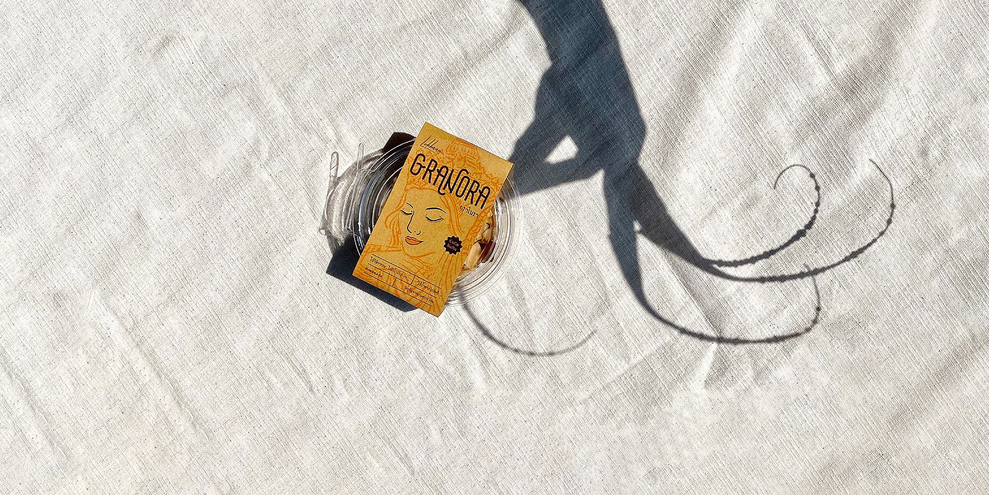 เป็นที่มาการเกิดแบรนด์ ‘GRANORA’ ซึ่งมาจากคำว่า กราโนลา พ้องเสียงกับคำว่า โนรา หรือ มโนราห์ ศิลปะการแสดงพื้นเมืองของพัทลุง ที่ใช้เป็นโลโก้สินค้า โดยมือนางแบบในรูปคือมือคุณแม่เอง
