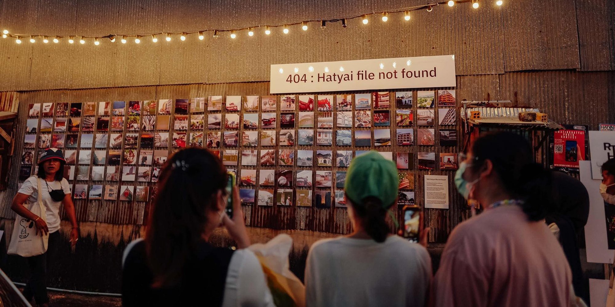 งานที่ผ่านมาอย่างนิทรรศการ ‘404 Hatyai File Not Found’ นิทรรศการภาพถ่ายขนาดเล็กที่ติดตั้งบนกำแพงสังกะสีบริเวณถนนภราดร-ประชารมย์ เป็นโปรเจกต์ทดลองทำนิทรรศการกลางแจ้งร่วมกับคนในชุมชนที่ตั้งคำถามถึงทิศทางพื้นที่สร้างสรรค์ในเมืองหาดใหญ่ว่า ผู้คนยังกระหายกับสิ่งสร้างสรรค์อยู่หรือไม่