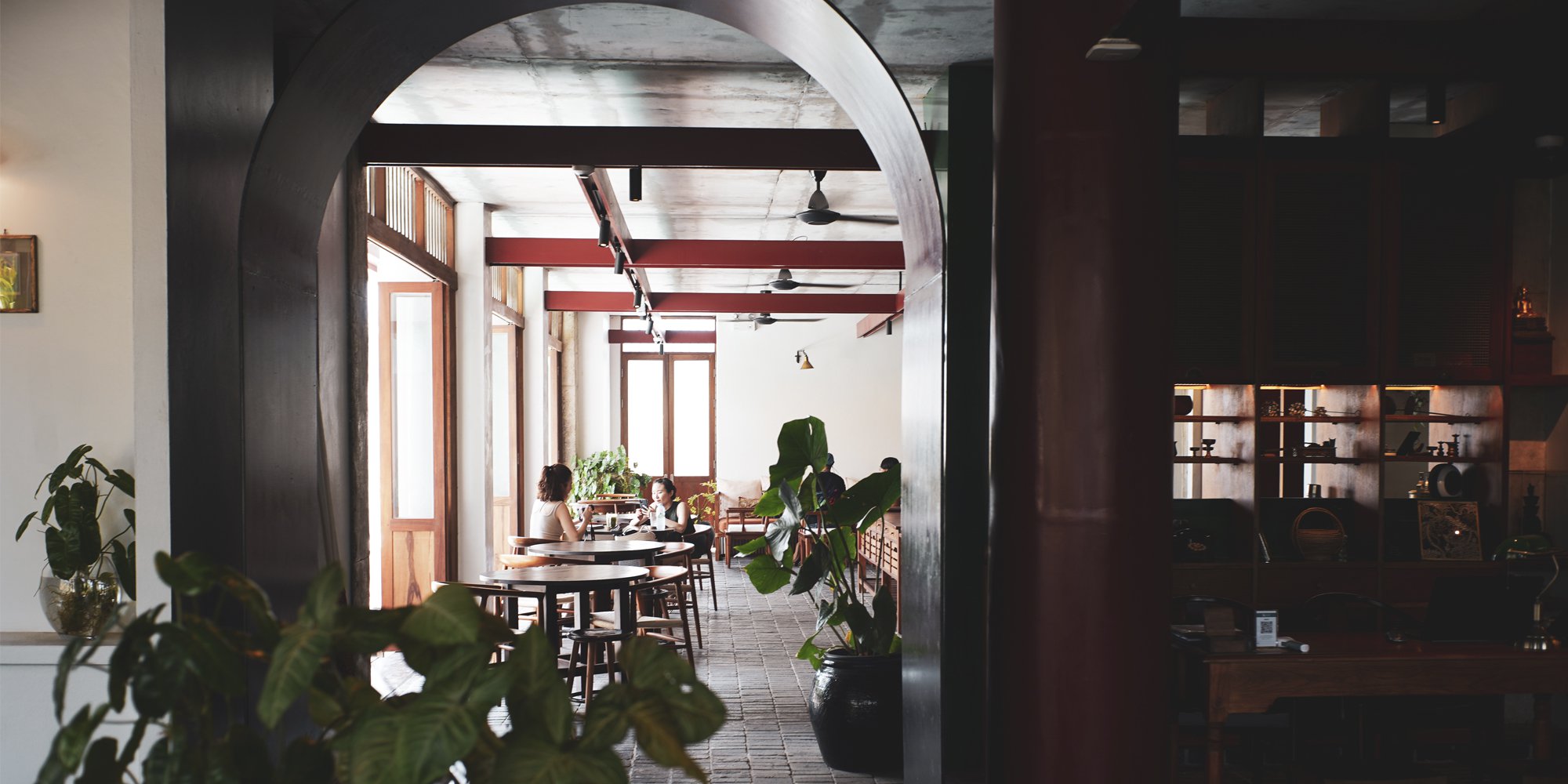 ภายใต้การดีไซน์ที่สอดแทรกเรื่องราววัฒนธรรมทุกมุมตั้งแต่ประตูทางเข้ายันในห้องนอน ข้างในถูกวางผังเหมือนการจำลองบ้านสมัยก่อน คือด้านหน้าจะเป็นส่วนของร้านกาแฟและบริเวณต้อนรับแขกแทนร้านของชำ เข้ามาด้านหลังจะเป็นห้องอาหาร “จุมโพ่” ซึ่งมาจากฉายาของก๋ง แปลว่า พ่อครัวบนเรือ เสิร์ฟเฉพาะอาหารท้องถิ่นแบบดั้งเดิมด้วยรสชาติกลมกล่อมแล้ว การมีเสียงและกลิ่นเล็ดลอดออกมาจากครัวที่อยู่ในบริเวณเดียวกันยังเพิ่มอรรถรสการกินได้เป็นอย่างดี ควบคู่ไปกับการใส่ใจทุกรายละเอียดของเฟอร์นิเจอร์และข้าวของเครื่องใช้ต่างๆ โดยไม่รู้สึกถึงการปรุงแต่งเสียจนเกินไป