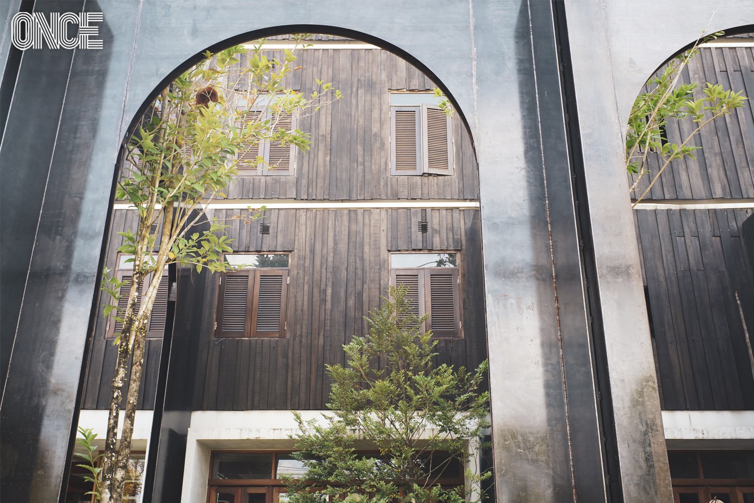 “บ้านสมัยก่อนจะเป็นห้องแถว มีพื้นที่หน้าบ้านอยู่นิดนึงทำเป็นซุ้มโค้ง เป็นพื้นที่ทางเดินต่อกันหลายๆ บ้าน ด้วยอยู่ในพื้นที่ฝนตกเกือบตลอดปี การมีช่องว่างซุ้มโค้งช่วยให้ทำการค้าได้ดีและแสดงถึงความเอื้อเฟื้อเผื่อแผ่ สละพื้นที่หน้าบ้านให้เป็นทางเดินแก่ผู้ที่สัญจรได้หลบแดด หลบฝน เกิดเป็นเอกลักษณ์ทางสถาปัตยกรรมพื้นถิ่นแถวนี้ เลยเอาจุดเด่นตัวนี้มาตั้งไว้หน้าโรงแรม และเลือกวัสดุเป็นเหล็กเพื่อสื่อถึงการทำเหมืองสมัยก่อน”