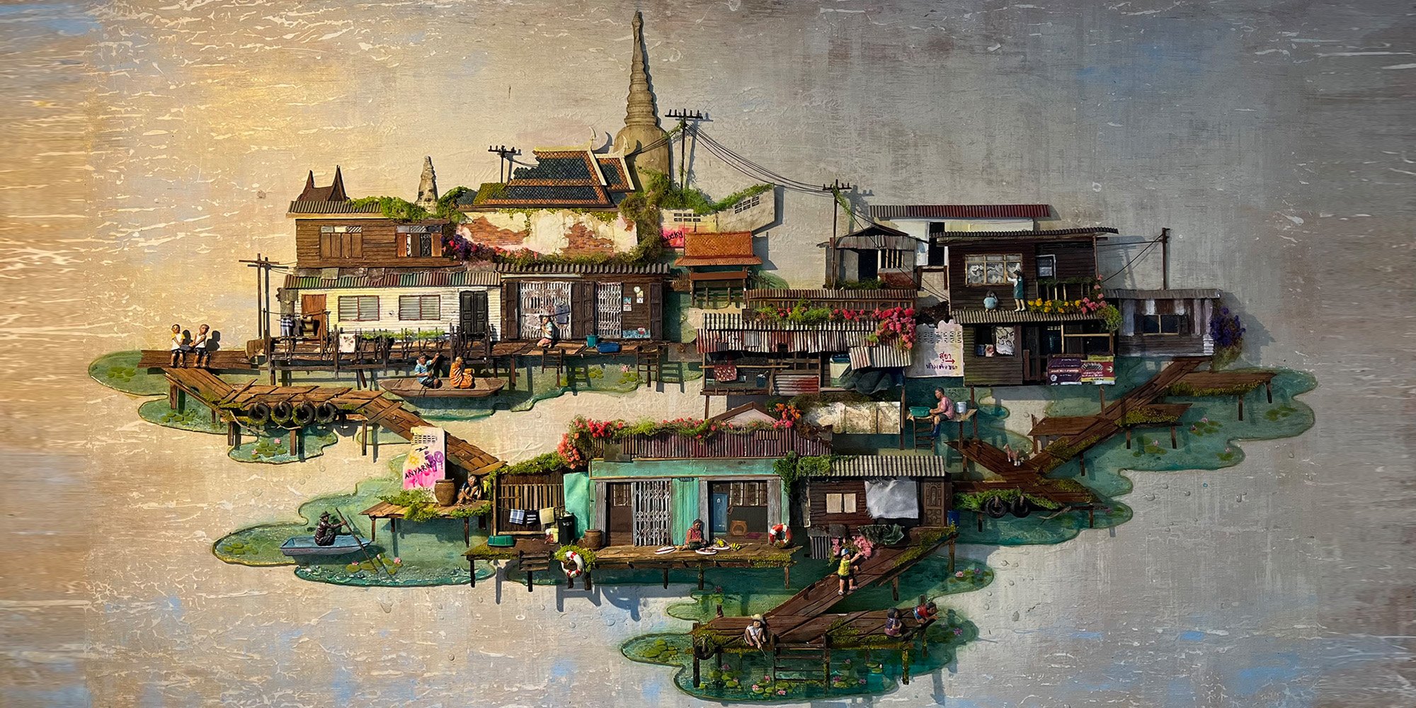 ภาพนูนต่ำจากเศษไม้ จากธีสิสสู่ลายเซ็นของไอซ์-อัญรินทร์ ศิลปินหลงใหลชุมชนริมน้ำ