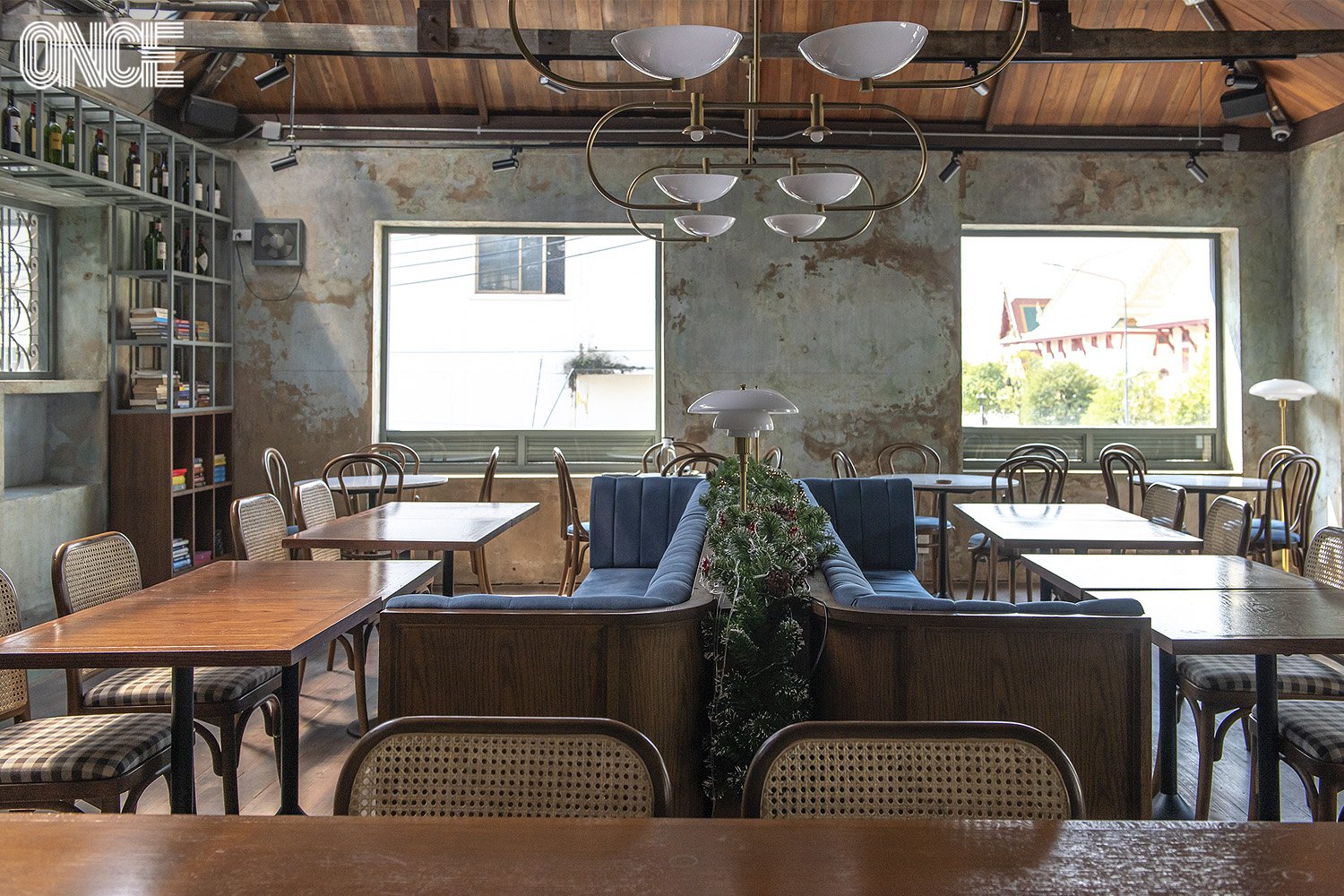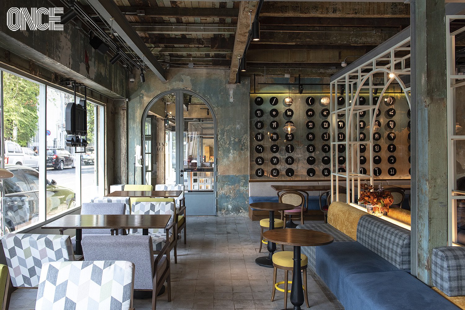 อีกครึ่งโซนแบ่งเป็นคาเฟ่ในชื่อ ‘Café Ìm’ คืนชีพความเป็นโรงพิมพ์เก่าด้วยการให้สถาปนิกออกแบบแป้นพิมพ์ยุคแรกแต่งเติมลงบนผนัง เป็นลูกเล่นช่วยเล่าประวัติศาสตร์ผ่านสถาปัตยกรรมได้เป็นอย่างดี และถ้าเดินขึ้นมาที่ชั้น 2 จะพบ ‘Maison Ìm Dessert Bar’ พื้นที่ทำเบเกอรี่โฮมเมดที่ให้ภาพเหมือนโรงงานทำขนมชั้นดี อบเสร็จเมื่อไหร่จะถูกส่งไปยังคาเฟ่ชั้นล่างทันที