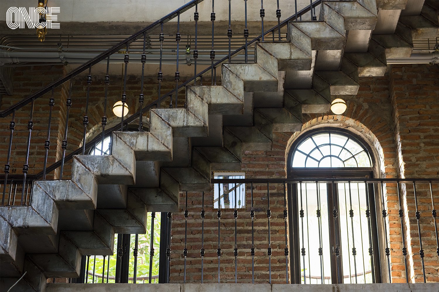 ส่วนที่ไม่พูดถึงเลยดูจะไม่ได้ คือบันไดเหล็กเกลียวที่มองผิวเผินดูจะไม่เข้าพวกกับปราสาทร้าง แต่นอกจากเป็นความชอบส่วนตัวของเอินแล้ว การใช้เหล็กยังแสดงให้เห็นถึงกาลเวลาที่ผ่านไปตามยุคสมัย ก่อให้เกิดการรีโนเวตใหม่อยู่เรื่อยๆ จนมีวัสดุจากยุคใหม่ๆ เสริมเติมเข้ามา
