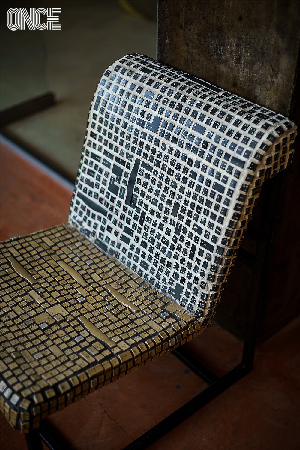 เดินขึ้นมาที่ชั้น 2 ความคัลเลอร์ฟูลของเก้าอี้ที่ร้าน Artzy Café ก็ดูเข้ากันดีกับโต๊ะสีขาวและบรรยากาศร้าน แต่พอได้เห็นสิ่งที่อยู่บนพนักเก้าอี้ถึงเข้าใจว่า ที่แท้สีสันสดใสของเก้าอี้ที่เห็น เป็นสีที่ตั้งใจเลือกมา เพราะนี่คือสีของรถแท็กซี่… (ฮั่นแน่…กำลังเสิร์ชรูปรถแท็กซี่ดูสินะ) และข้อความบนพนักที่แท้ก็ตั้งใจล้อกับป้ายทะเบียนรถนั่นเอง