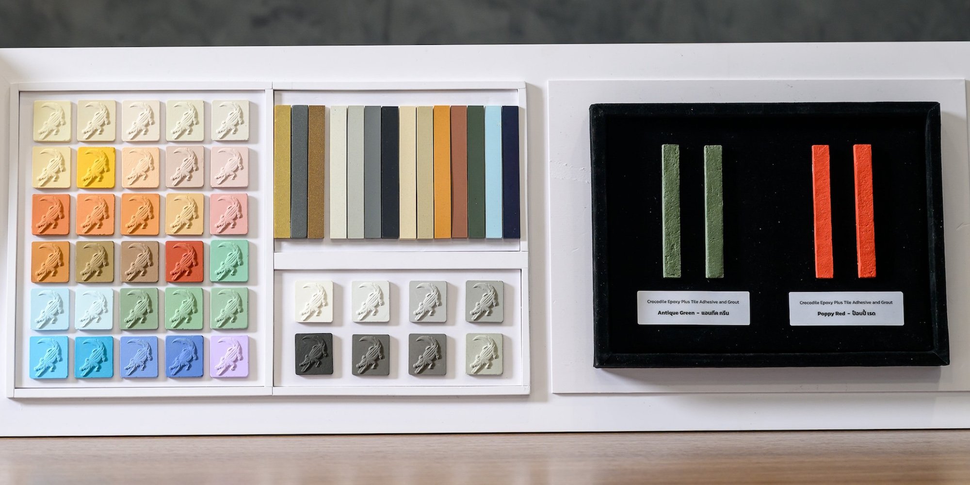 ในด้านประสิทธิภาพ “จระเข้ อีพ็อกซี่ พลัส” ยังคงมาตรฐานของกาวยาแนวคุณภาพสูง ด้วยแรงยึดเกาะที่แข็งแรง ป้องกันราดำ ตะไคร่น้ำ และแบคทีเรียด้วยเทคโนโลยีไมโครแบน จึงเหมาะกับพื้นที่ที่ต้องการความสะอาดและความทนทานเป็นพิเศษ โดยในปัจจุบันมีให้เลือกถึง 17 เฉดสี ครอบคลุมทั้งกลุ่มสีคลาสสิก เช่น ขาว เทา ดำ ครีม ไปจนถึงเฉดสีสดใสตอบโจทย์สายดีไซน์ เช่น ส้ม ฟ้า น้ำเงิน และสีบรอนซ์