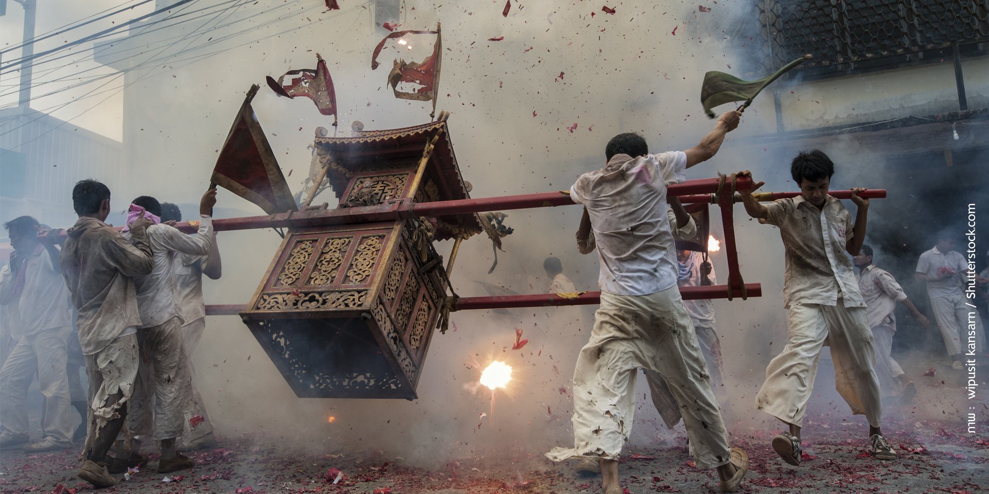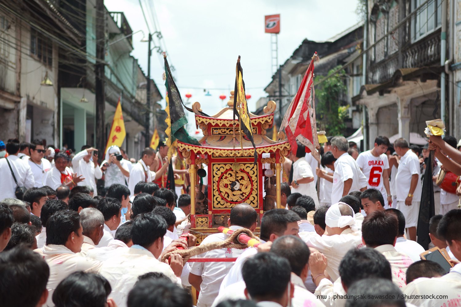 - ความสวยงามของโคมไฟประดับประดาเต็มท้องถนน ละลานตาไปด้วยธงสีเหลือง เสียงประทัดนับล้านนัดดังสนั่นเมือง มาพร้อมกับขบวนแห่พระแห่งศรัทธา ศาลเจ้าคลาคล่ำไปด้วยผู้คนชุดขาว นี่คือบรรยากาศเทศกาลกินเจที่แสนคุ้นเคยในทุกๆ ปีเมื่อเดือน 9 ของจีนเวียนมาบรรจบ
