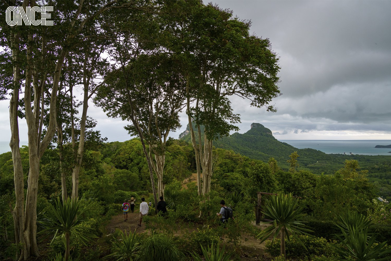 เมื่อละสายตาออกจากกรอบสี่เหลี่ยมเล็กๆ ของช่องมองภาพ ฉากชีวิตเบื้องหน้าก็ขยายออก ทันทีที่รู้ว่าเกาะพะลวยมีจุดชมวิวมุมสูงให้ได้เดินขึ้นไปพิชิต วิญญาณของนักสำรวจก็เกิดขึ้นในทันใด เดินไต่ความสูงขึ้นไปทีละนิดๆ จนมาถึงจุดสูงสุดมองเห็นวิว 360 องศา ทำได้แต่ยืนนิ่งๆ แล้วสูดอากาศเข้าให้ฉ่ำปอด เพราะภาพเบื้องหน้าล้วนเป็นความงามที่ยากจะต่อกร แต่ละมุมล้วนมีลักษณะเฉพาะตาอันน่าทึ่ง