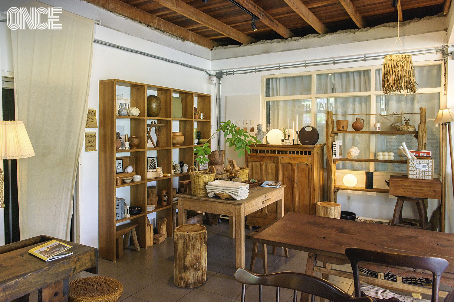 สเปซในร้านคือสิ่งที่ปรับเปลี่ยนได้ตลอดเวลา แต่ก็ยังคุมโทนที่ทำให้เรารู้สึกสบายตาสบายใจ ผึ้งบอกว่าเธอเปลี่ยนฟังก์ชั่นแทบทุกวันด้วยซ้ำตามความรู้สึกของตัวเอง มุมที่เราเห็นวันนี้อาจเปลี่ยนไปแล้วในวันพรุ่งนี้ และข้อดีก็คือทำให้เราไปที่นี่ได้ไม่เบื่อ “เรารู้สึกว่าวันธรรมดาลูกค้ามานั่งทำงาน เราก็อาจจะเอาโต๊ะใหญ่วางตรงนี้ แต่พอวันเสาร์-อาทิตย์ เราอาจปรับ เอาโต๊ะใหญ่ออกแล้วเอาโต๊ะเล็กมาเสริมเพื่อให้คนนั่งได้มากขึ้น วันไหนมีดีเจมาเปิดแผ่น ก็อาจจะปรับไปเป็นอีกมู้ด”
