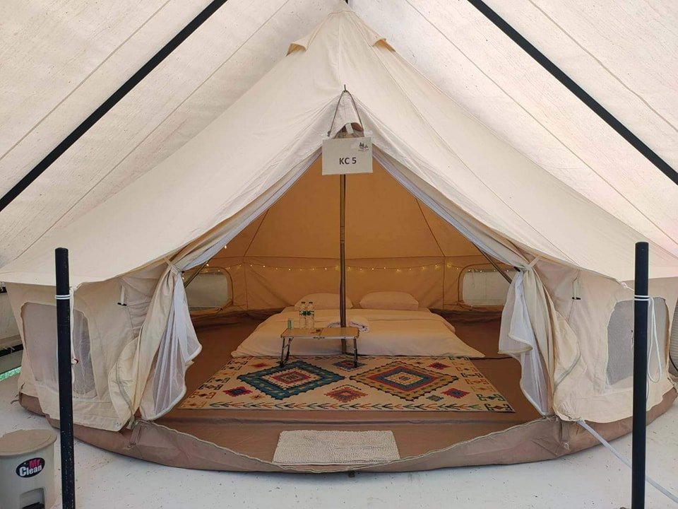 พิษโควิด-19 ทำให้ หนุ่มนักบัญชีต้องกลับบ้านมาทำสวนปาล์มที่ซื้อไว้ และเห็นว่าบรรยากาศดี มีคลองไหลผ่านที่ดิน บวกกับส่วนตัวเป็นคนชอบแคมปิ้งอยู่แล้ว จึงเกิดเป็น แรงบันดาลใจแบ่งพื้นที่สวน 3 ไร่ทำเป็นที่พักสไตล์ Glamping กลางสวนปาล์ม สำหรับคนรุ่นใหม่ที่ชอบธรรมชาติและต้องการความสะดวกสบาย เต็นท์กระโจมใหญ่ที่มีทั้งแอร์และพัดลม สามารถพักได้ตลอดทั้งปี เพราะเจ้าของทำเป็นหลังคาคลุมเต็นท์เอาไว้เพื่อความยั่งยืนในการใช้งานและพักได้สบายๆในช่วงหน้าฝน ไฮไลต์ของที่นี่คือการได้ผ่อนคลายไปกับบรรยากาศร่มรื่น ฟังเสียง ธรรมชาติ น้ำใสไหลเย็นสบาย