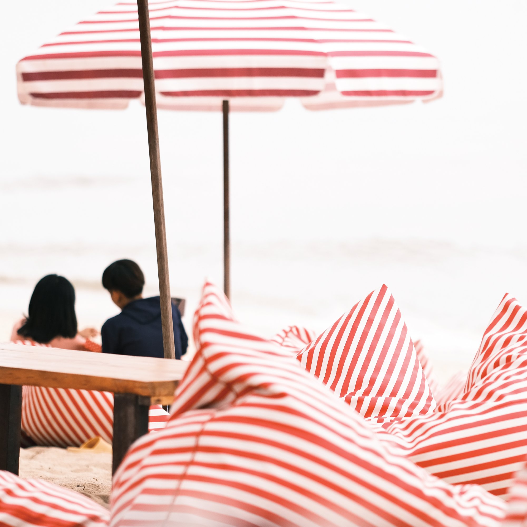 ถ้ามองจากด้านนอกจะเห็นคาเฟ่นี้เป็นรูปครึ่งวงกลม แต่จริงๆ ที่นี่เป็นคาเฟ่ไม้ทรงตัวยู ด้านหนึ่งกรุกระจกใสมองเห็นวิวทะเลชายหาดบางปอ แบ่งที่นั่งเป็น 2 โซนคือ อินดอร์ กับเอาท์ดอร์ พื้นที่อินดอร์อาจมีสเปซไม่กว้างมาก ส่วนเอาท์ดอร์นั้น เลือกวางตัวลงบนบีนแบ็กกันได้เลย ที่นี่นอกจากมีเมนูกาแฟและเครื่องดื่มแล้ว ยังมีเมนูอาหารอีสาน ไทย ฝรั่งมาให้อิ่มกันอีกด้วย