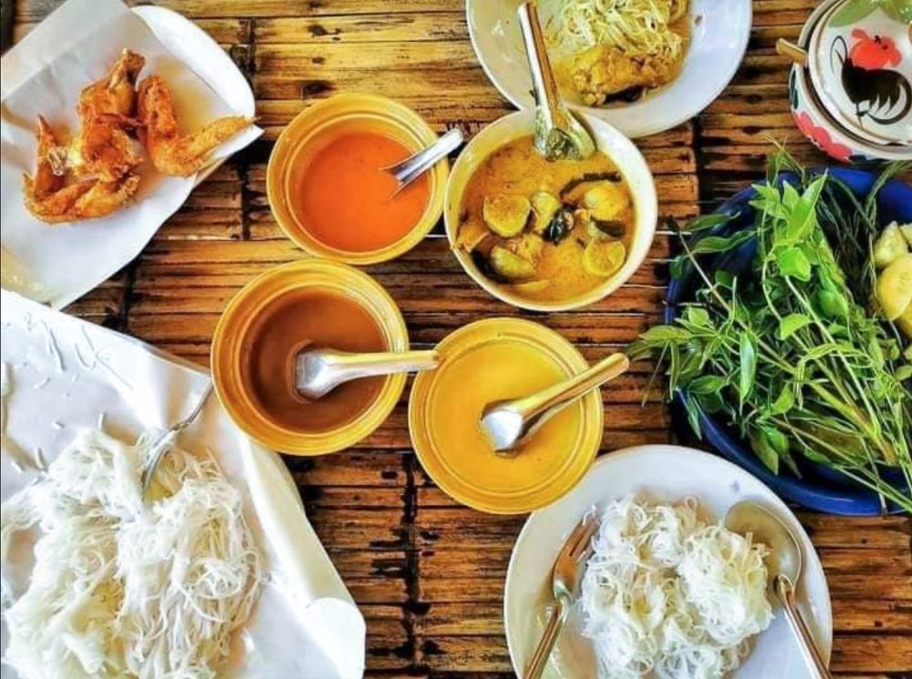 ร้านขนมจีนในสวนปาล์มที่เราชอบที่สุด และไม่พลาดทุกครั้งเวลาไปสิชล เสิร์ฟขนมจีนพร้อมน้ำต่างๆ มาเป็นเซ็ต ทั้งแกงไก่ น้ำยา น้ำพริก น้ำยาป่า ส่วนไตปลาเข้มข้นนั้นวางประจำไว้ทุกโต๊ะ ไก่ทอดก็ทำจานต่อจาน ผักเหนาะเราหยิบได้ไม่อั้น ทั้งหมดในราคาเบาๆ แต่เราได้ความอร่อยมาเต็มอิ่ม คุ้มและดีอย่างนี้ไม่หลงรักไม่ไหวจริงๆ
