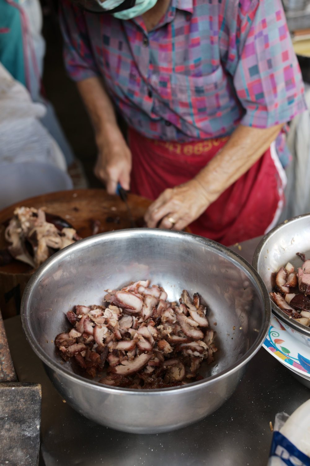 ร้านขายข้าวหมูแดง หมูกรอบเล็กๆ ขนาด 1 คูหาบนถนนราชดำเนิน ชื่อเสียงของข้าวหมูแดงของที่นี่ไม่เพียงมีทีเด็ดเรื่องน้ำราดแบบดั้งเดิม หากเป็นหมูแดงสูตรโบราณที่มีความนุ่มหอมที่ย่างเตาถ่าน จนครองใจชาวตรังมานานกว่า 50 ปี ที่นี่ยังมีบะหมี่แห้งเป็นอีกเมนูเด็ดที่หลายคนแนะนำให้ลอง อร่อยแบบไม่ต้องปรุงเพิ่ม แต่ต้องรีบไปหน่อย เพราะหมดเร็วมาก