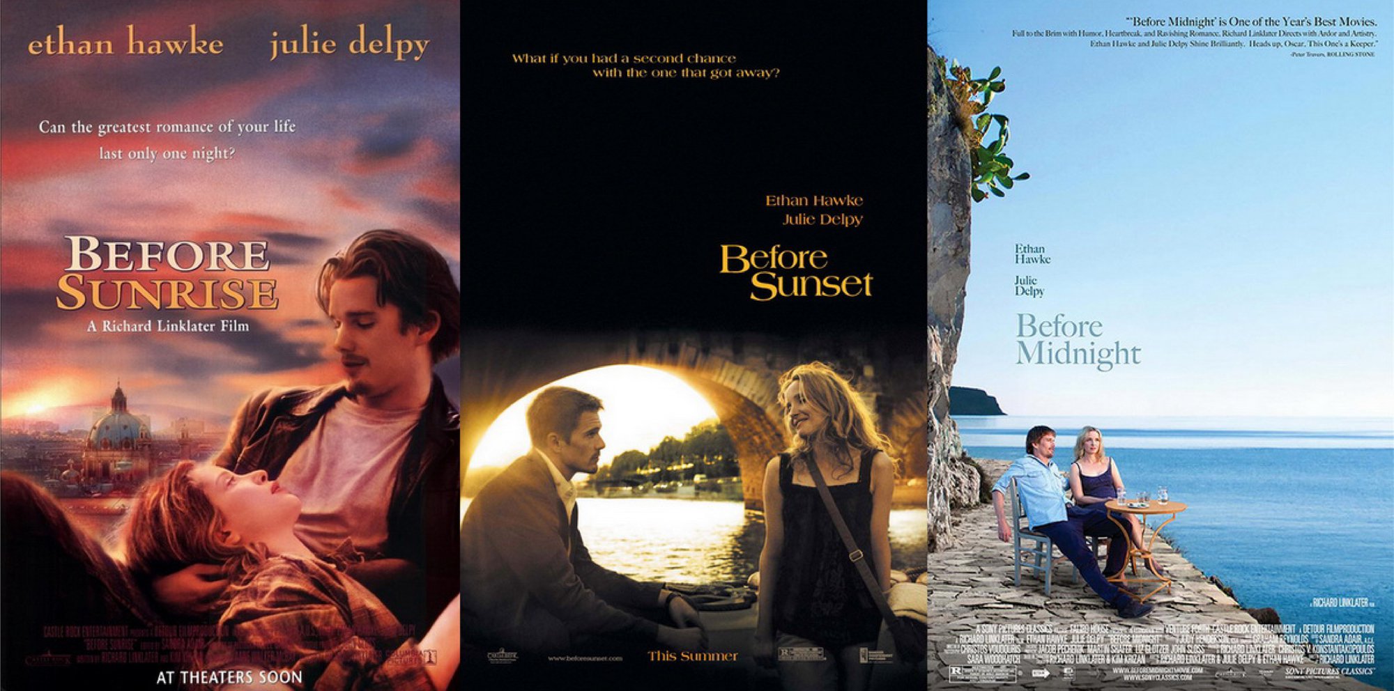 หนังรักโรแมนติกดรามาไตรภาค ที่มีใจกลางอยู่ที่องค์ประกอบเพียงสองอย่าง คือ การเดินทางและบทสนทนาของคนสอคน Before Sunrise เล่าเหตุการณ์เมื่อคนสองคนได้มาพบกัน ร่วมทางกัน และแยกทางกันไปพร้อมคำสัญญา ในขณะที่ Before Sunset เป็นการเดินทางกลับมาพบกันของทั้งคู่ เพื่อพูดคุย ทวงถาม ถกเถียง และนำไปสู่การตัดสินใจบางอย่างในความสัมพันธ์ จนมาถึง Before Midnight ที่คนสองคนยังคงร่วมเดินทาง พูดคุย ในบริบทและบทบาทที่เปลี่ยนไป เป็นบทสรุปของความสัมพันธ์ที่ให้พวกเขาได้สำรวจตรวจตรา ทบทวนกับสิ่งที่ผ่านมา และมองไปข้างหน้าร่วมกัน