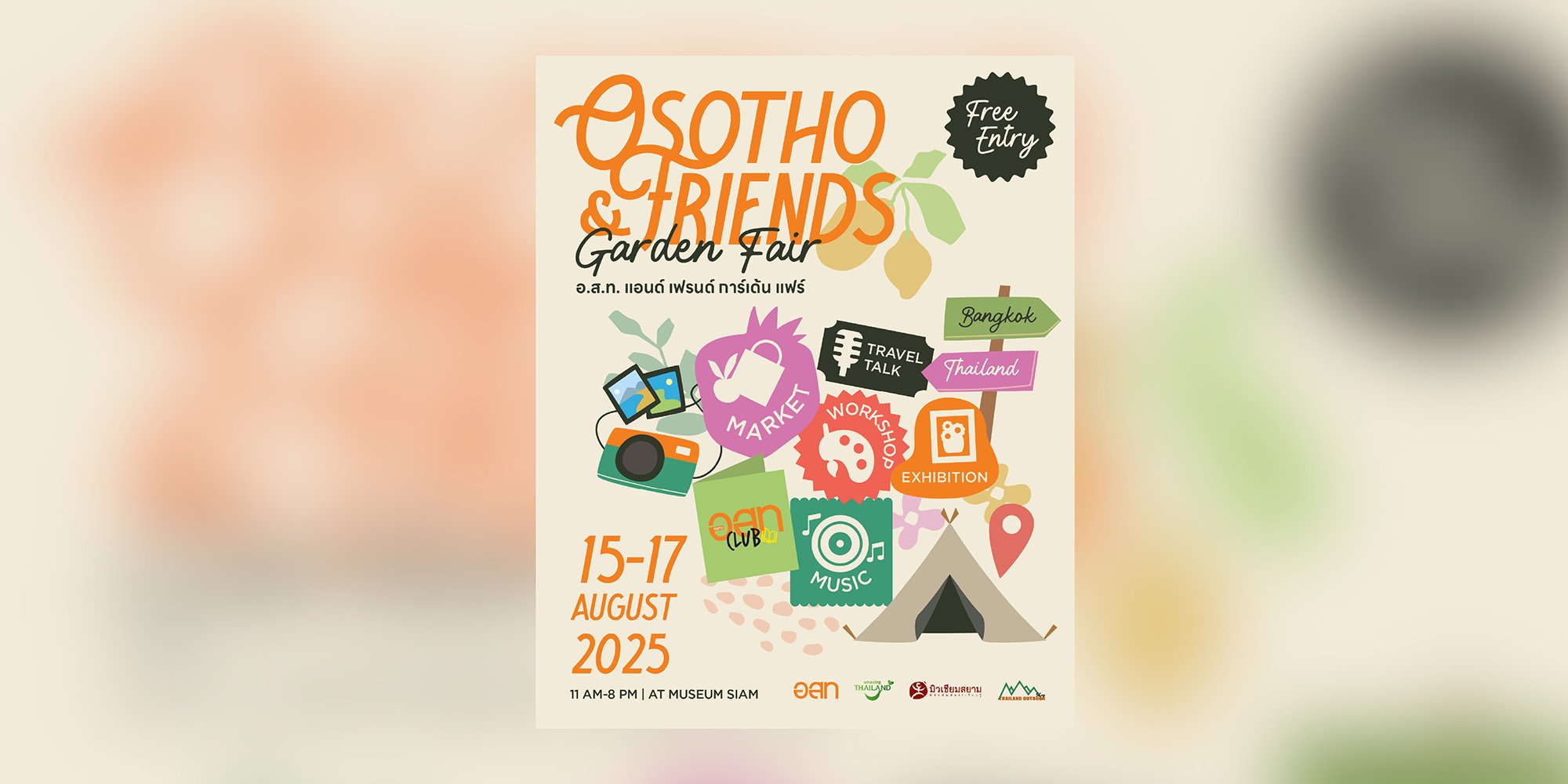 เตรียมตัวให้พร้อมสำหรับสุดสัปดาห์แห่งการผจญภัยสุดพิเศษที่จะทำให้ได้สัมผัสความหมายแท้จริงของการเดินทางแบบรักษ์โลกสไตล์ อ.ส.ท. ในงาน “OSOTHO & FRIENDS Garden Fair” ที่จัดขึ้นเป็นครั้งแรก! เพื่อการเฉลิมฉลองครั้งสำคัญของนิตยสารท่องเที่ยวที่อยู่คู่คนไทยมายาวนานถึง 65 ปี งานนี้ได้นำประสบการณ์การเดินทางทั่วไทยมาไว้ในงานเดียว จัดขึ้นสุดสัปดาห์ระหว่างวันที่ 15-17 สิงหาคม 2568 เวลา 11.00-20.00 น. ณ ลานอัฒจรรย์ มิวเซียมสยาม เข้าชมฟรี! และกิจกรรมดีๆ อีกเพียบ