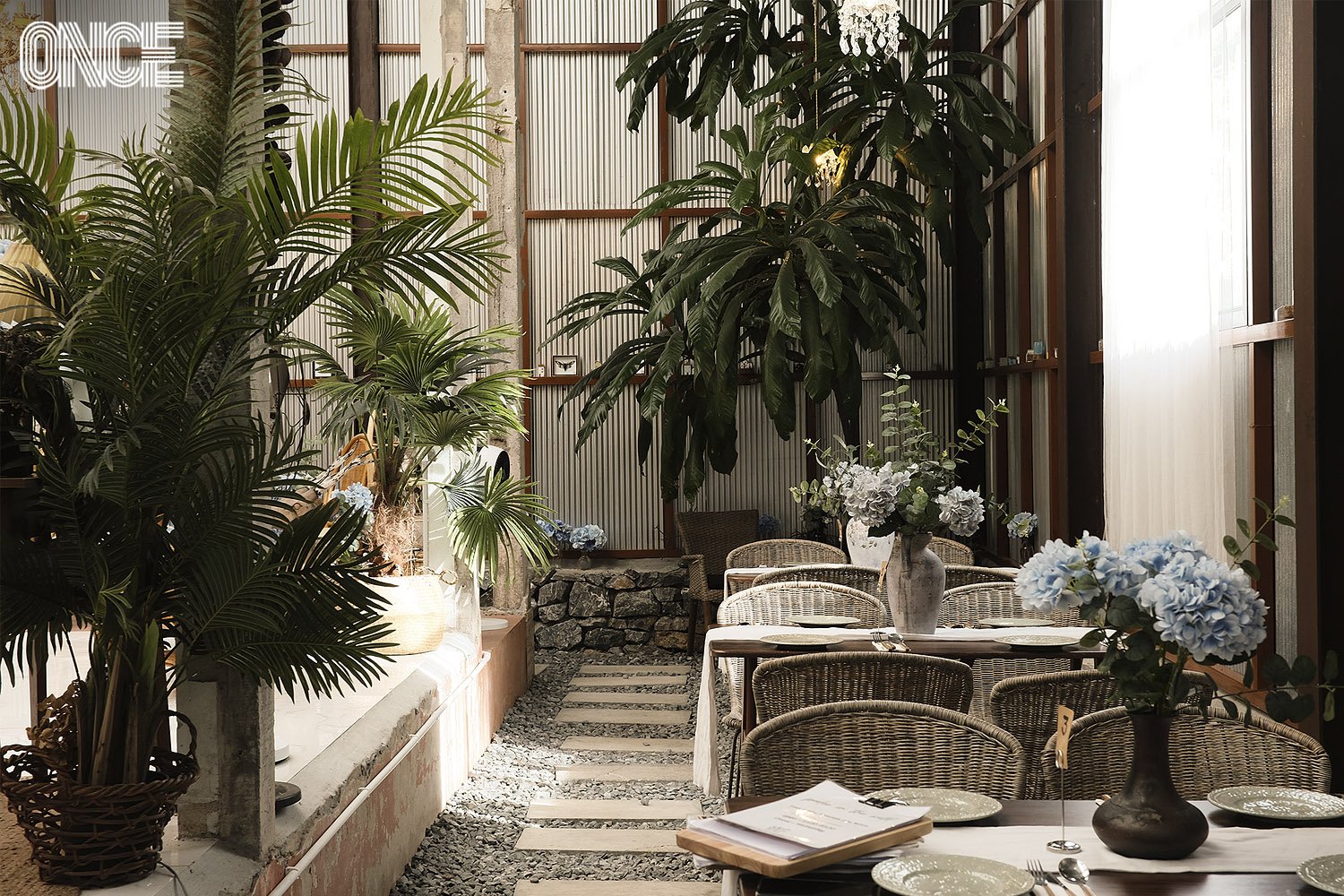จุดเด่นของที่นี่ที่เห็นปุ๊บรู้ปั๊บเลยว่าเรามาถึงแล้ว คือตัวอาคารที่มีโครงสร้างเลียนแบบโรงนาฝรั่ง หลังคาทรงจั่ว ภายนอกกรุด้วยผนังสังกะสีดิบๆ แต่จริงๆ มันคือตัวบ้านหลังเก่าที่เคยมีอยู่แล้วในที่ดินเก่า แต่ออกแบบใหม่ โดยทุบทั้งหมดจนเหลือแค่เสาแค่ทำผนังครอบทับอีกที