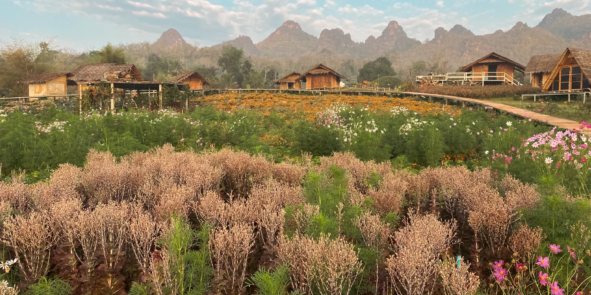 ทางเดินไม้ ทุ่งดอกดาวเรือง และที่พักที่แสนจะเรียบง่าย แต่วิวนี่ว้าวสุดๆ