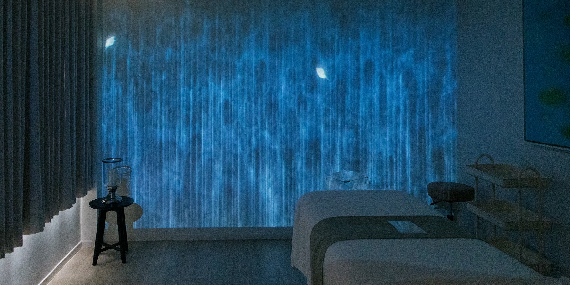 “ได้แรงบันดาลใจจากการชมงาน Art Installation ของ teamLab ที่โตเกียว เขาทำห้องหนึ่งสำหรับแสดงดิจิทัลอาร์ตเป็นรูปคลื่น แล้วให้คนไปนั่ง รู้สึกเหมือนอยู่ทะเลเลย นั่งแล้วก็นึกในใจว่า แหม…ถ้ามีคนมานวดด้วยน่าจะดี เลยปิ๊งไอเดียเก็บมาทำที่สปาเราดีกว่า พอใส่เพลงด้วย แม้เป็นช่วงเวลาสั้นๆ ไม่กี่นาที ก็รู้สึกผ่อนคลายแล้ว เป็นกิมมิกเล็กๆ ก่อนนวด แล้วเราเป็นอาร์ตแกลเลอรีอยู่แล้ว ก็เข้ากันดี”