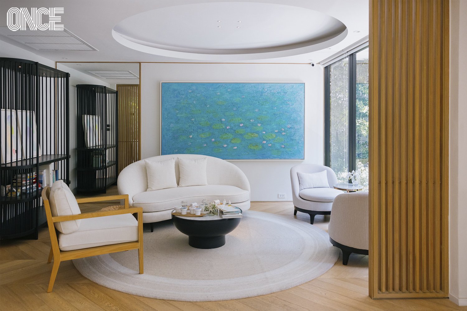 ซีเล่าอีกว่า ความที่คุณพ่อเป็นผู้รับเหมา ตอนที่สร้างที่นี่ เธอเลยรีเควสต์ว่า ผนังต้องสีขาวเท่านั้น อยากได้ฟีลแกลเลอรี เพราะซีตั้งใจจะนำภาพวาดที่เป็นของสะสมของตัวเองมาตกแต่ง นั่นทำให้เรานึกอยากรู้เลเวลความอาร์ตของเธอ