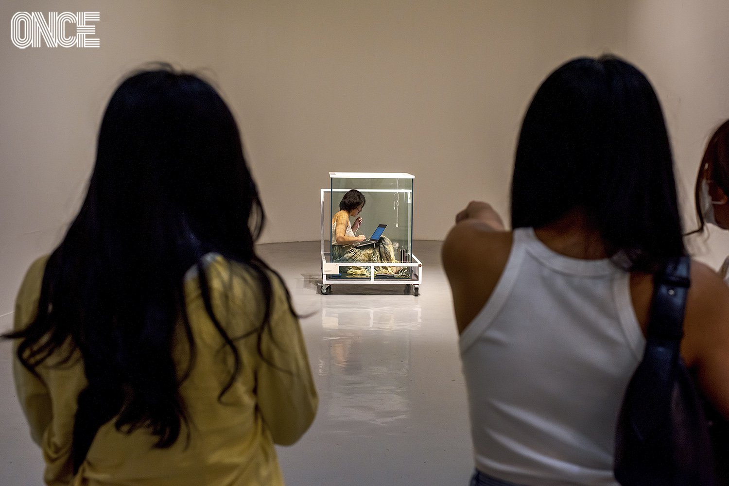 น้ำอุ่นบอกว่า ก่อนจะเข้ามาอยู่ในตู้กระจกนี้ เธอมีความรู้สึกอยากหลีกเลี่ยง ไม่อยากอยู่ จนเมื่อได้เข้ามาใช้ชีวิตในวันแรก น้ำอุ่นเฝ้ารอเวลาให้มันผ่านไป เธอเที่ยวพูดคุยกับคนดูไม่หยุดเพื่อฆ่าเวลา และเพราะพื้นที่แคบทำให้ขยับแขนขาได้ไม่เต็มที่ เธอบอกกับเราว่า ทั้งปวดทั้งเมื่อยและอึดอัด อยากจะออกจากพื้นที่ตรงนี้มากๆ จนกระทั่งเวลาล่วงเลยไปหลายวัน ร่างกายเธอเริ่มปรับสภาพได้ แม้ปวดบ้างตามร่างกาย แต่เธอเริ่มคุ้นชินและเริ่มรู้สึกสบายกับพื้นที่ของตัวเองเสียแล้ว