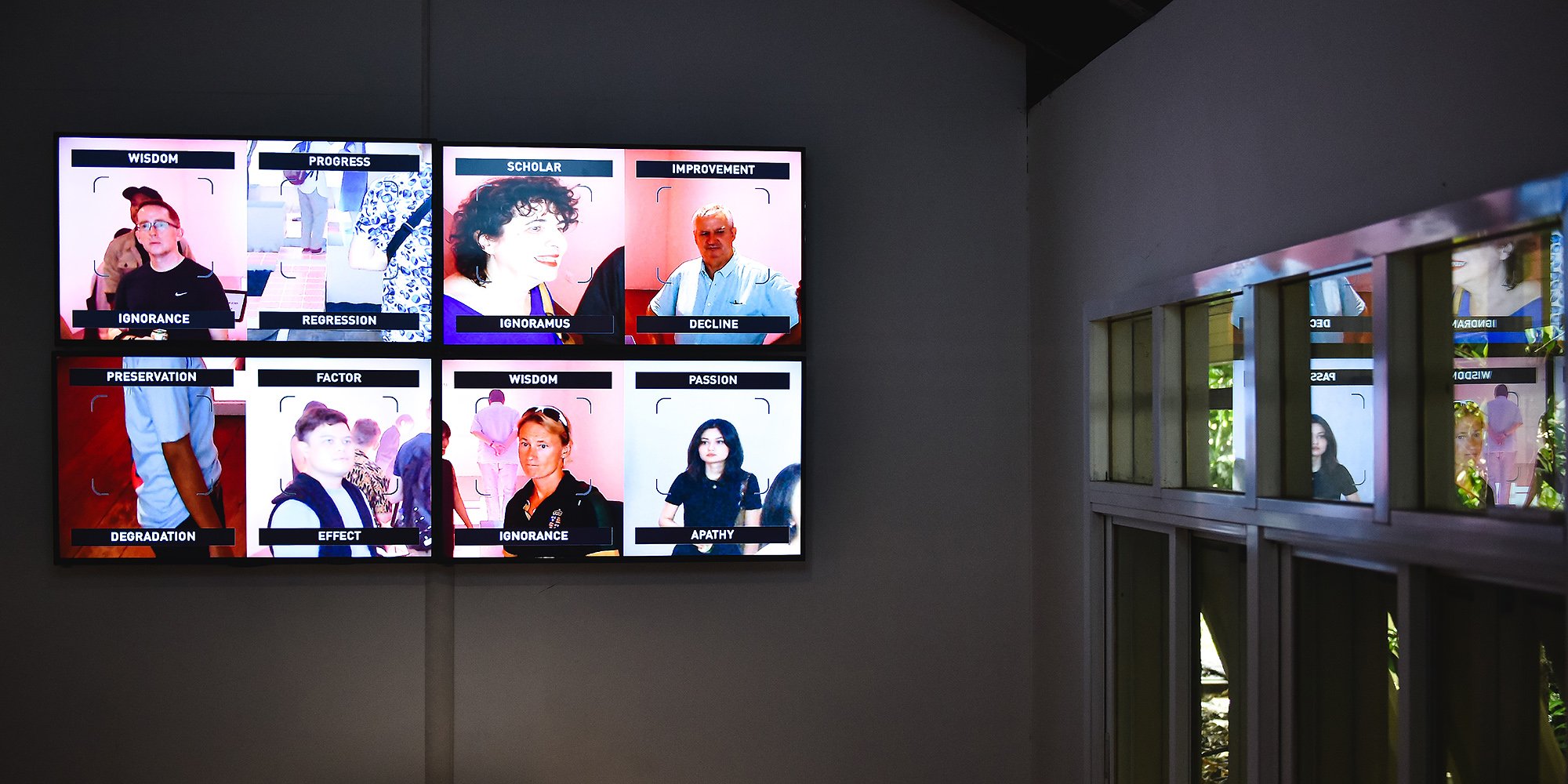 “ตอนที่คุณดูการไหลเทของฝุ่น ดูว่าบ้านเรามันกำลังเกิดอะไรขึ้น ชิ้นงานมันก็กำลังจับใบหน้าหรือรีแอคชั่นของคุณเช่นกัน เพื่อเอามาฉายให้ดูในนี้ โดยแต่ละช่องบนจอแสดงผลจะมีคำคนละขั้วแปะไว้ เหมือนให้คุณเลือกเอาเลยว่าจะเป็นตัวปัญหา ผู้แก้ปัญหา หรือจะเป็นแค่คนเพิกเฉย หรือเป็นคนที่ลงมือทำอะไรสักอย่างไหม”