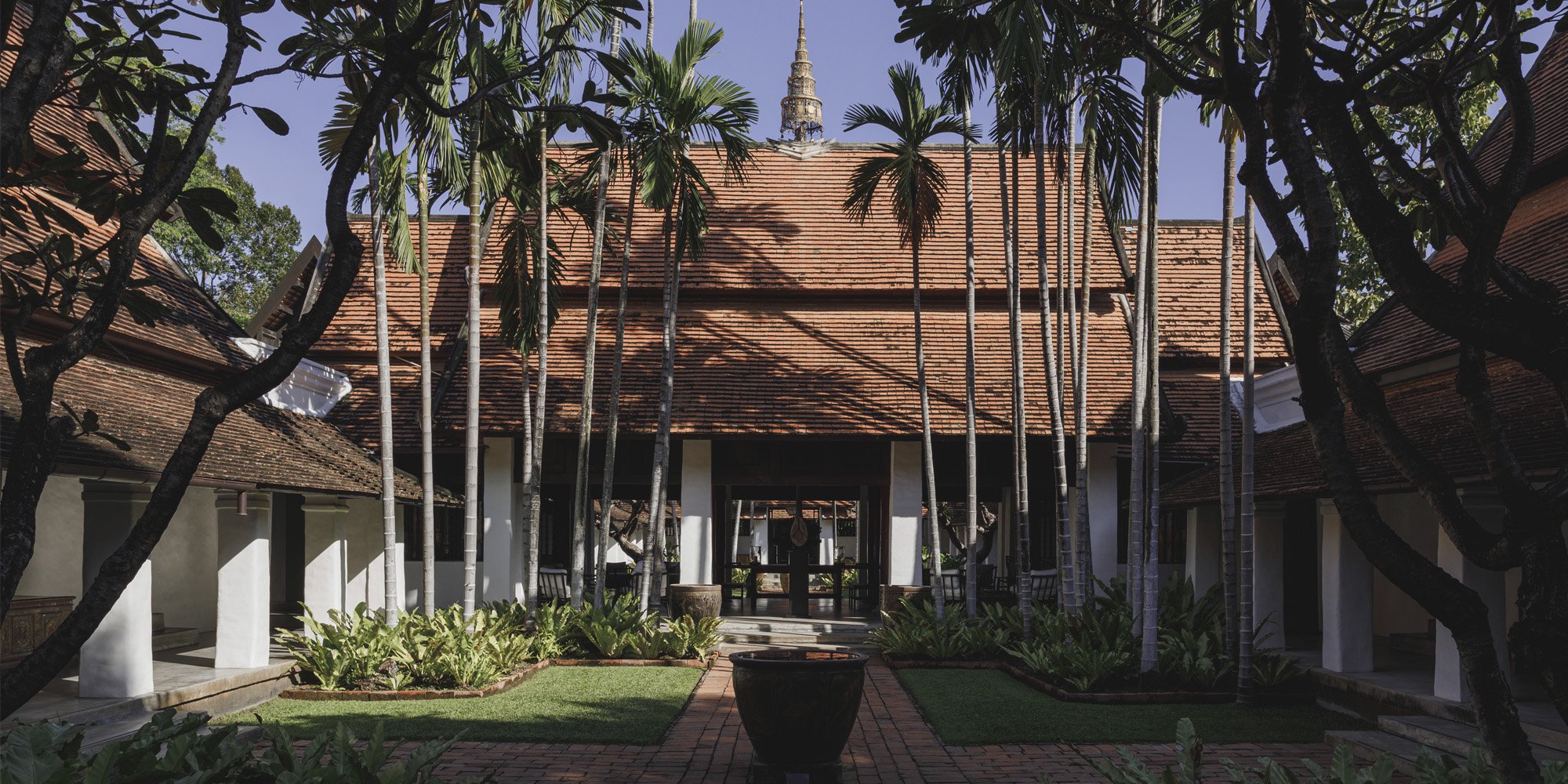 “เดิมทีอยากทำเป็นสถาปัตยกรรมล้านนาทั้งหมด เพราะเราสร้างโรงแรมบนดินแดนล้านนา แต่อาจารย์องอาจแนะว่าสถาปัตยกรรมไทยเป็นแบบลอยตัว ซึ่งตัวตึกไม่เชื่อมกัน เลยนำเอาสถาปัตยกรรมแบบจีนมาใช้วางเลย์เอาท์ ให้ตัวอาคารห้องพักล้อมอยู่ด้านนอก สเปซตรงกลางเป็นคอร์ทยาร์ด เพื่อดึงความสนใจให้ทุกคนโฟกัสกับคอร์ทยาร์ดมากกว่าสิ่งแวดล้อมรอบนอกที่เป็นเขตชุมชน ส่วนหลังคาเป็นกระเบื้องดินขอสไตล์ล้านนาดั้งเดิม” คุณรุจเล่าให้ฟังถึงที่มา