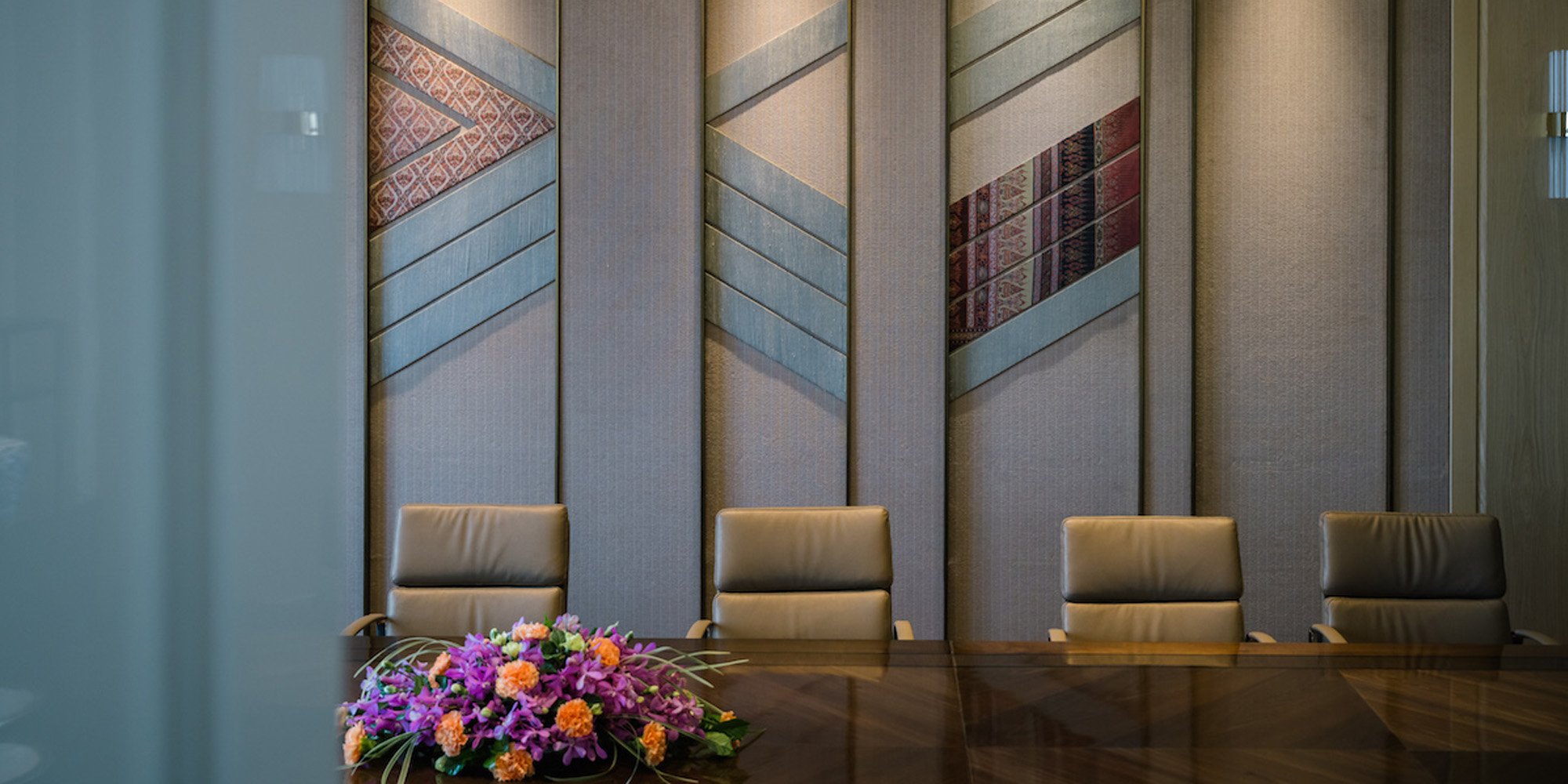 Royal Suite – ห้องสวีทสุดหรูที่ผสานความงามแบบไทยเข้ากับสไตล์ยุโรป พร้อมทัศนียภาพงดงามของสวนเบญจกิติและวิวทะเลสาบเปิดโล่งเต็มสายตา ห้องนั่งเล่นโอ่อ่า ห้องน้ำหินอ่อนพร้อมจากุซซี และบริการบัตเลอร์ส่วนตัว