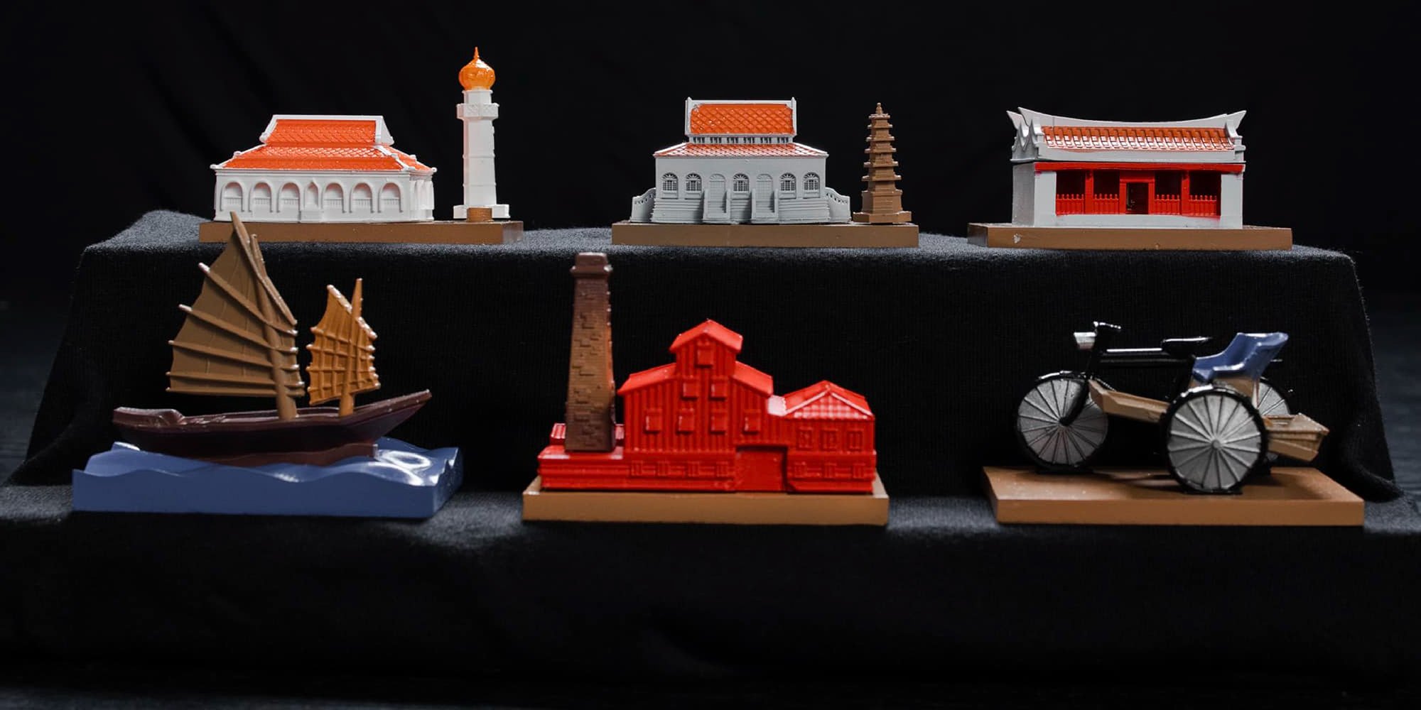 แนวคิด : สถานที่ท่องเที่ยวสําคัญในเมืองสงขลาที่นำคุณค่าทางสถาปัตยกรรมของมัสยิดบ้านบน รถสามล้อ โรงสีแดง หับ โห้ หิ้น ฯลฯ มาจำลองเป็นมินิโมเดลขึ้นรูปด้วยเรซิ่นที่มีสีสัน ไม่ทิ้งรอยรูปเดิมของสถานที่จริงแม้แต่น้อย