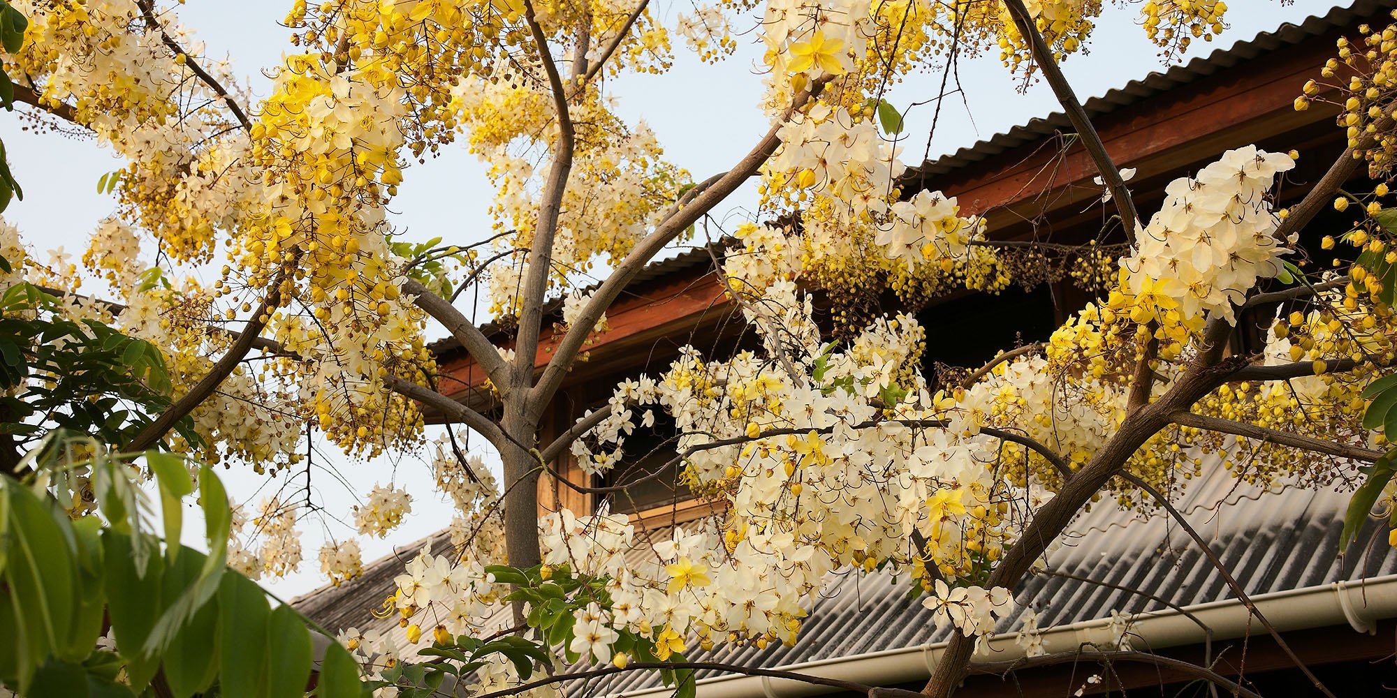 แต่สิ่งที่เซอร์ไพรส์มากที่สุดไม่ใช่ของเก่า หากคือต้นคูนขาว ในทางพฤกษศาสตร์ ต้นคูนมีหลายสายพันธุ์ เราน่าจะชินกันกับคูนสีเหลือง แต่ในครอบครัวของคูน มันมีทั้งคูนขาว คูนชมพู และคูนที่มีดอกหลายสีจนได้ชื่อว่าคูนสายรุ้ง