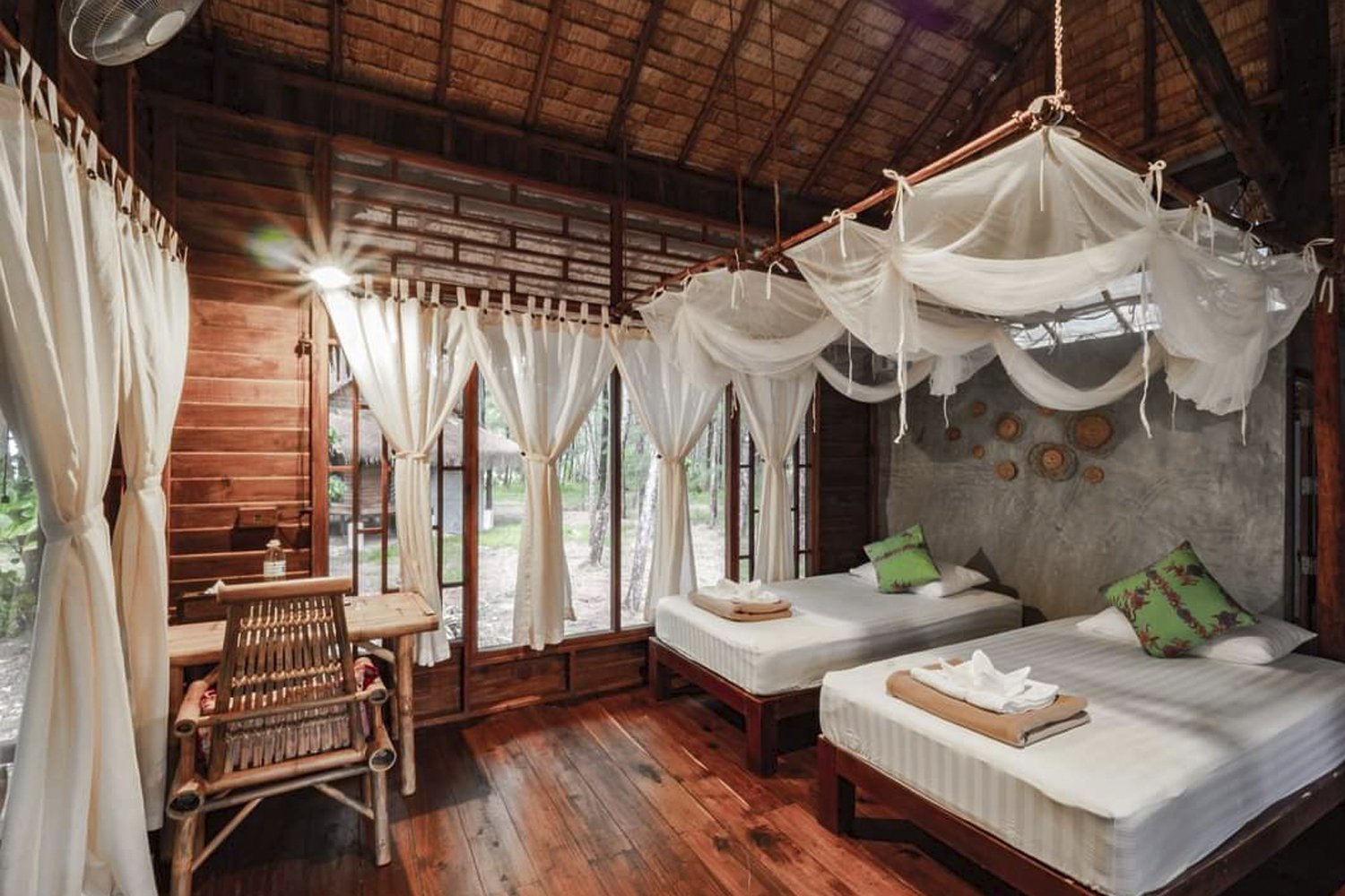 ส่วนหนึ่งเป็นเพราะการออกแบบห้องพักที่เน้นประหยัดพลังงานให้มากที่สุด ไม่มีแอร์ ไร้ทีวี ผนังห้องทุกหลังทำเป็นช่องลมตามภูมิปัญญาชาวบ้านและติดมุ้งลวดกันยุงแทน เพื่อให้ลมผ่านภายในห้องตลอดเวลา แม้ไม่ได้เปิดพัดลมก็ยังรู้สึกเย็นสบาย โดยเน้นไฟเฉพาะจุดที่จำเป็น พร้อมปลั๊กไฟแบบ USB สำหรับไฟฟ้ากระแสตรง