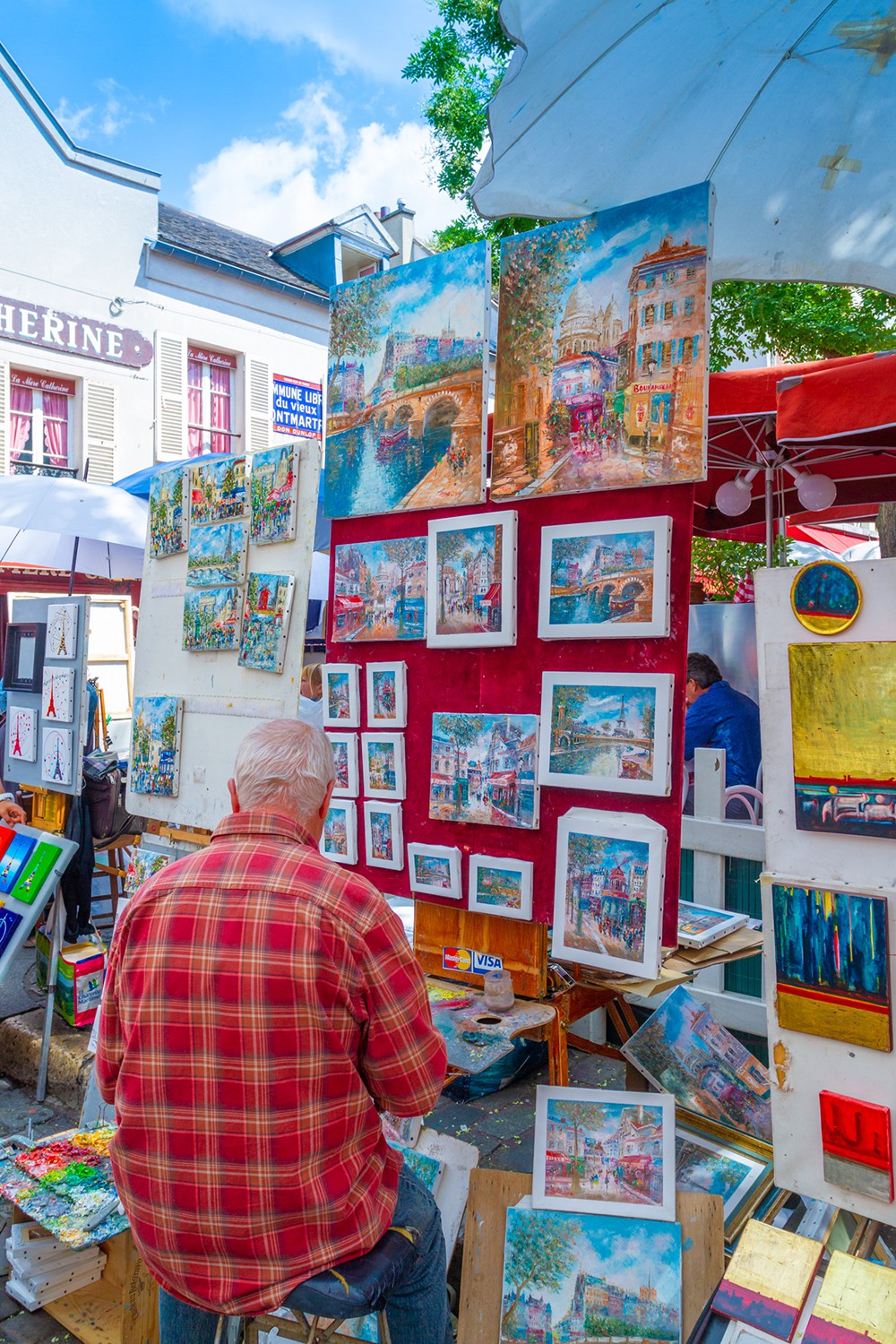 จากร้านกาแฟเดินต่อไปจนถึงถนน Joseph-de-Maistre เดินตามทางไปอีกสักพัก จะเห็น le Moulin de la Galette ซึ่งเคยเป็นสถานที่สังสรรค์และเต้นรำในยุคก่อน และได้บันทึกไว้ในภาพวาดชื่อ ‘การเต้นรำที่มูแล็งเดอลากาแล็ต’ ผลงานของปีแยร์-โอกุสต์ เรอนัวร์ (Renoir) ถ้าคุณเป็นคนอินกับงานศิลปะแล้วล่ะก็ จากตรงนั้นมาอีกไม่ไกล แวะชม Place du Tertre (จัตุรัส Tertre) ที่เต็มไปด้วยศิลปินและจิตรกรรับจ้างวาดรูปด้วย มาอยู่เนินสูงแบบนี้ทั้งที ต้องไม่พลาดการชมวิวจากมุมสูง ซึ่งจุดชมวิวจากโดมของมหาวิหารซาเครเกอร์ (Sacré-Cœur) นั้นเป็นที่รู้กันว่าคือหนึ่งในจุดชมวิวที่สวยที่สุดในกรุงปารีส