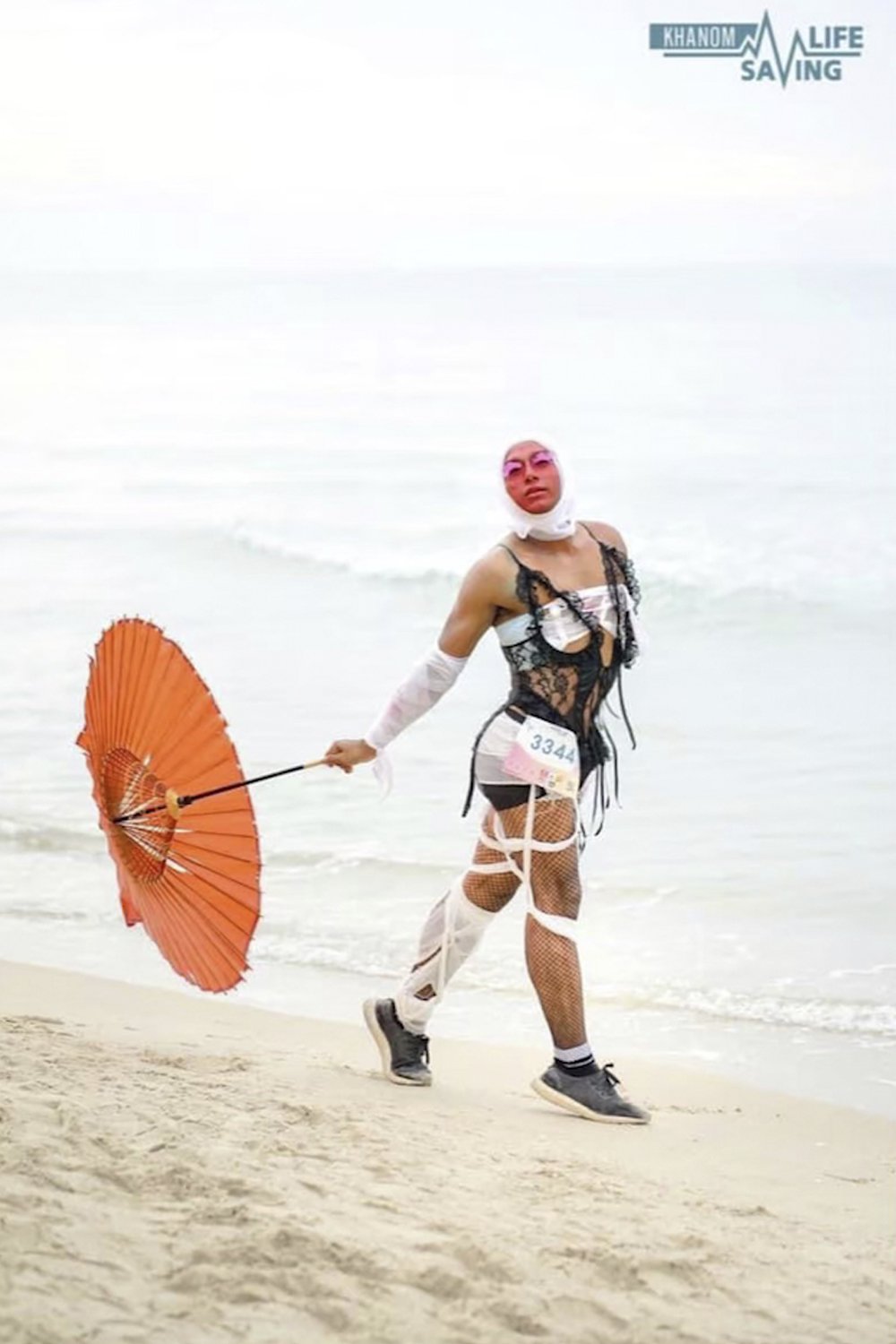 “เราเป็นเทรนเนอร์ ออกกำลังกายทุกวัน ซึ่งการที่เราแต่งแบบนี้ จริงๆ แล้วเป็นความสนุกในกลุ่มเพื่อนด้วย วิ่งงานไหนก็ดูธีมงานก่อนแล้วก็คิดออกแบบชุด ตัดเย็บกันเอง ไม่ต้องเนี้ยบมาก เอาแค่ให้วิ่งถึงเส้นชัยพอ ชุดไม่เคยเป็นอุปสรรคเลย แล้วตอนเริ่มวิ่งใส่มากี่ชิ้น ต้องเอาเข้าเส้นชัยด้วยกันให้ครบ ไม่มีทิ้งหล่นระหว่างทาง”