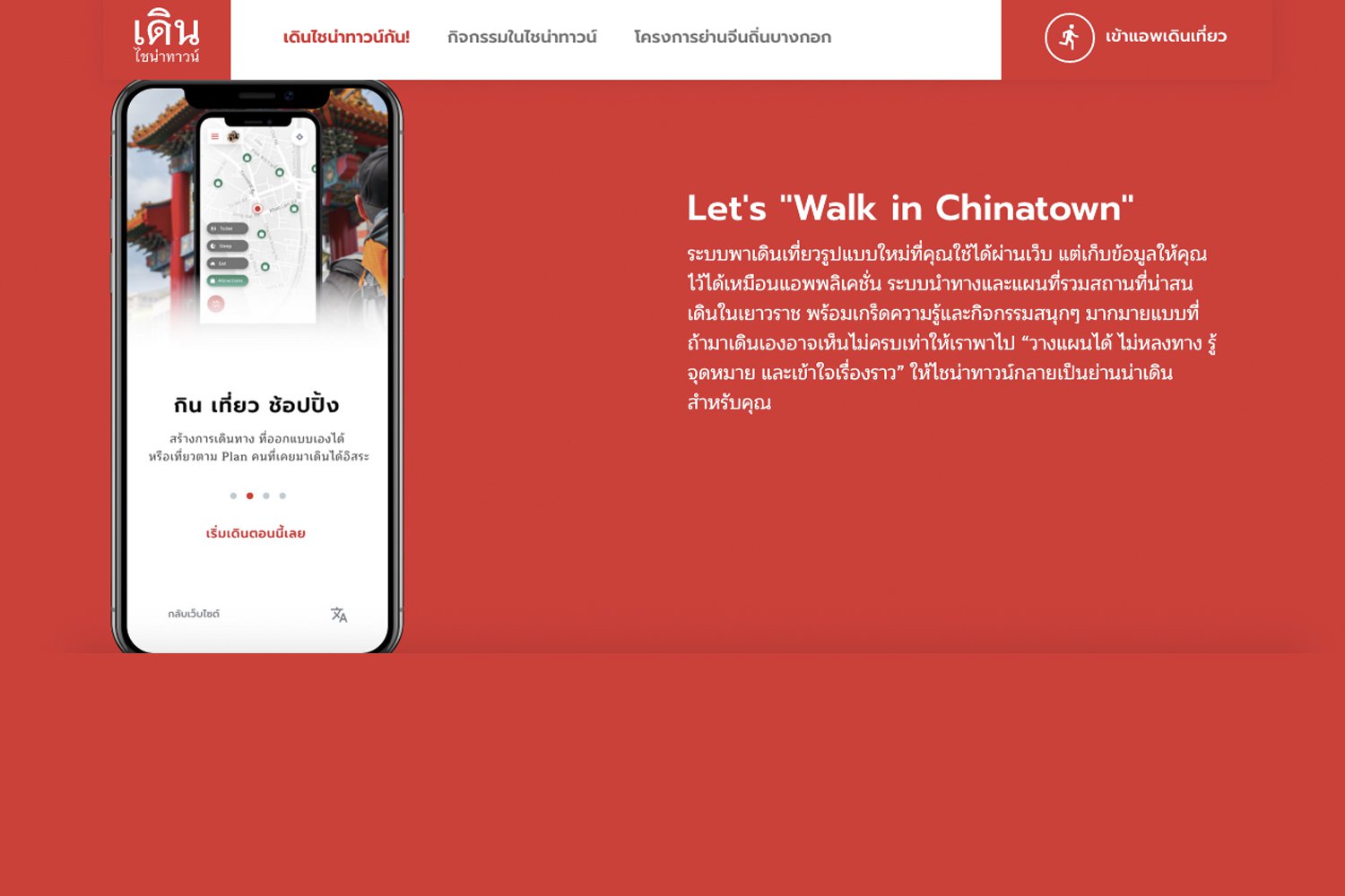 ก่อนหน้ามีการผลิตสื่อ ทั้งทำแผนที่ วารสาร เนื่องจากพบว่าปัญหาของคนส่วนใหญ่ คือ ไม่รู้จักไชน่าทาว์น ไม่ทราบว่าต้องเดินไปทางไหน ไม่ทราบชื่อสถานที่ ไม่รู้ว่าเรื่องราวของเทศกาล หรือประเพณีต่างๆ จึงมักเดินหลงทางเพราะส่วนใหญ่บริเวณดังกล่าวเป็นตรอก ซอก ซอยเล็กๆ ด้วยเหตุนี้ จึงเลี่ยงการเดินไปใช้รถสาธารณะแทน ชุมชนและย่านนั้นๆ จึงขาดโอกาสในการถ่ายทอด และส่งต่อมรดกวัฒนธรรม ซึ่งไม่ได้รับการเผยแพร่อย่างคุ้มค่าและเหมาะสม หลังจากรวบรวมข้อมูลได้มากกว่า48 จุด จึงได้เกิดแนวคิดในการทำเว็บแอปพลิเคชัน ‘เดินไชน่าทาวน์’ ขึ้นมาในที่สุด